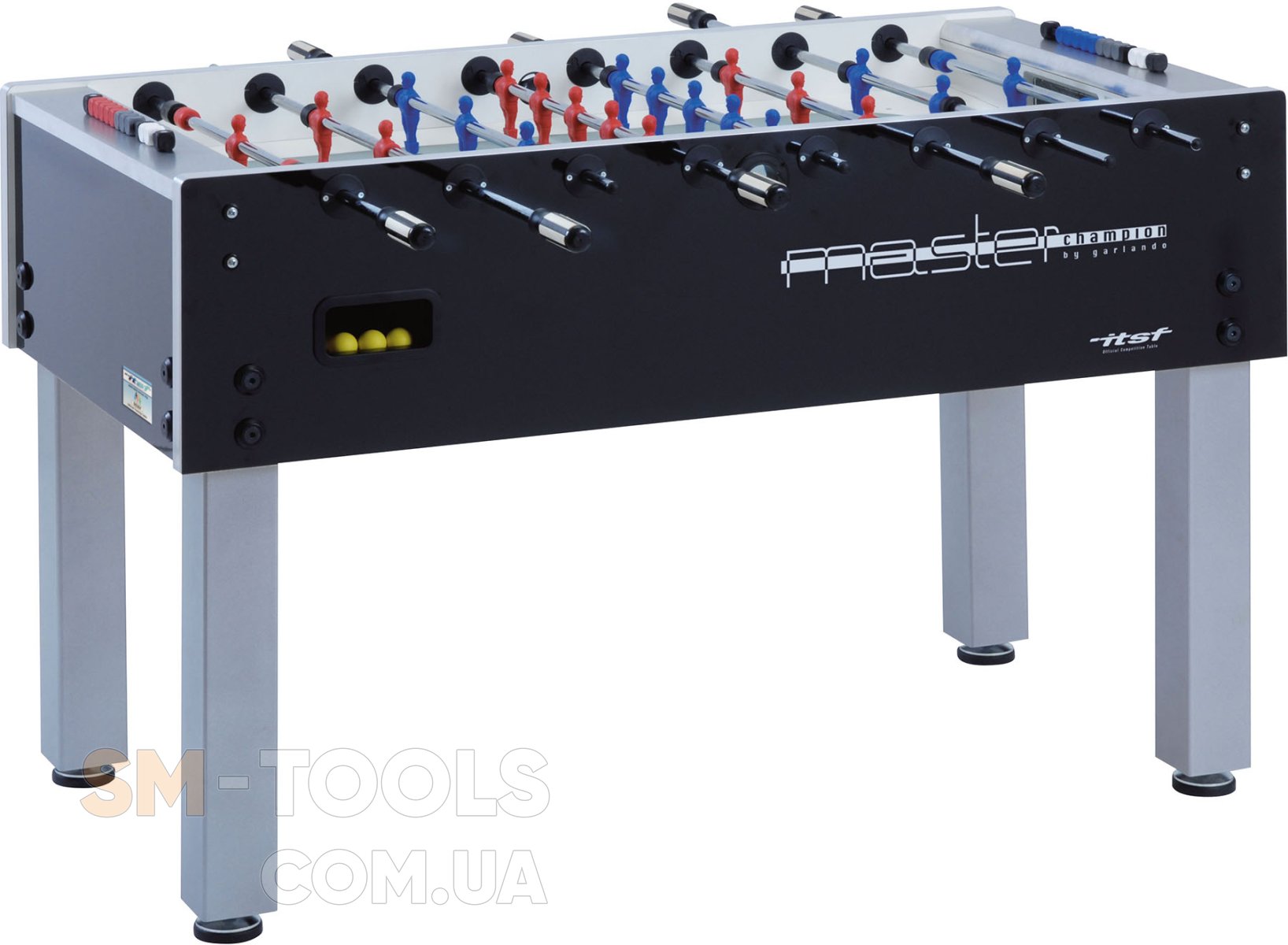 Настольный футбол Garlando Master Champion ITSF (MASTER) – официальный стол Международной федерации настольного футбола ITSF, предназначенный для тренировок профессиональных игроков и международных соревнований категорий International, Master Series и Pro Tour. Прочная конструкция стола имеет элегантное сочетание черного и серебристого цветов, вдохновленного стилем хай-тек. Модель изготовлена непосредственно в Италии из высококачественных материалов, обеспечивающих долговечность и удовольствие от игры, с учетом конкретных требований, которым должен соответствовать футбольный стол. Настольный футбол Garlando Master Champion ITSF (MASTER) является глубоко инновационным продуктом по сравнению с традиционным домашним столом и идеальным инструментом для тренировок перед международными турнирами.