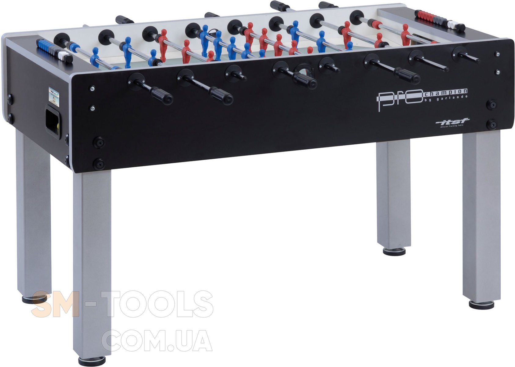 Настольный футбол Garlando Pro Champion ITSF (PRO) – официальный стол Международной федерации настольного футбола ITSF, предназначенный для тренировок профессиональных игроков и соревнований Pro Tour. Прочная конструкция стола имеет элегантное сочетание черного и серебристого цветов, вдохновленного стилем хай-тек. Модель изготовлена непосредственно в Италии из высококачественных материалов, обеспечивающих долговечность и удовольствие от игры, с учетом конкретных требований, которым должен соответствовать футбольный стол. Настольный футбол Garlando Pro Champion ITSF (PRO) соответствует европейским стандартам безопасности EN 71-1, 71- 2, 71-3 и 71-9.