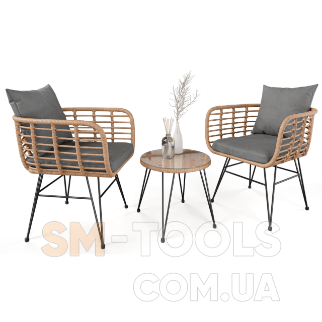 Описание Набор садовой мебели Di Volio Savio стол и 2 стулья бежевый/темно-серый