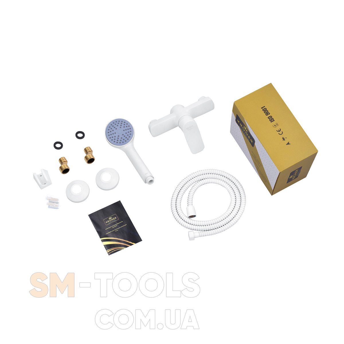 Смеситель для душа Kroner KRM Fulda-W050 – стильный и практичный выбор для вашей ванной комнаты. Изготовлен из высококачественного силумина, обеспечивает прочность и долговечность. Картриджный механизм смешивания позволяет точно регулировать температуру воды. Прекрасно сбалансированная круглая форма воронки обеспечивает равномерный и комфортный душ. Матовая белая поверхность смесителя придает ему элегантность. Настенный монтаж обеспечивает оптимальное использование места. Наслаждайтесь комфортным и сбалансированным душем, получая удовольствие от качественного оборудования Kroner. >Дополнительно : Производитель оставляет за собой право вносить изменения в комплектацию и конструкцию изделий, не ухудшающих качество, без предварительного уведомления.Количество грузовых мест : 1Комплектация : Смеситель, лейка для ручного душа, душевой шланг, кронштейн, крепеж, инструкция.Страна регистрации бренда : ГерманияСтрана-производитель : КитайМатериал : СилуминМеханизм смешивания : КартриджПоверхность : Матовая Назначение : Для душаРабочее давление, бар : К 3Тип управления : ОднорычажныйСпособ монтажа : НастенныйВысота, мм : 115Ширина, мм : 215< /Глубина, мм : 105Отверстие под смеситель : 2Диаметр подключения : 1/2''Система предупреждения искажения шланга : НетРасход воды, л/мин : До 13Тип подвода : ЖесткийДлина душевого шланга, мм : 1500Диаметр воронки, мм : 80Душевый гарнитур в комплекте : ДаФорма воронки : Круглая< /