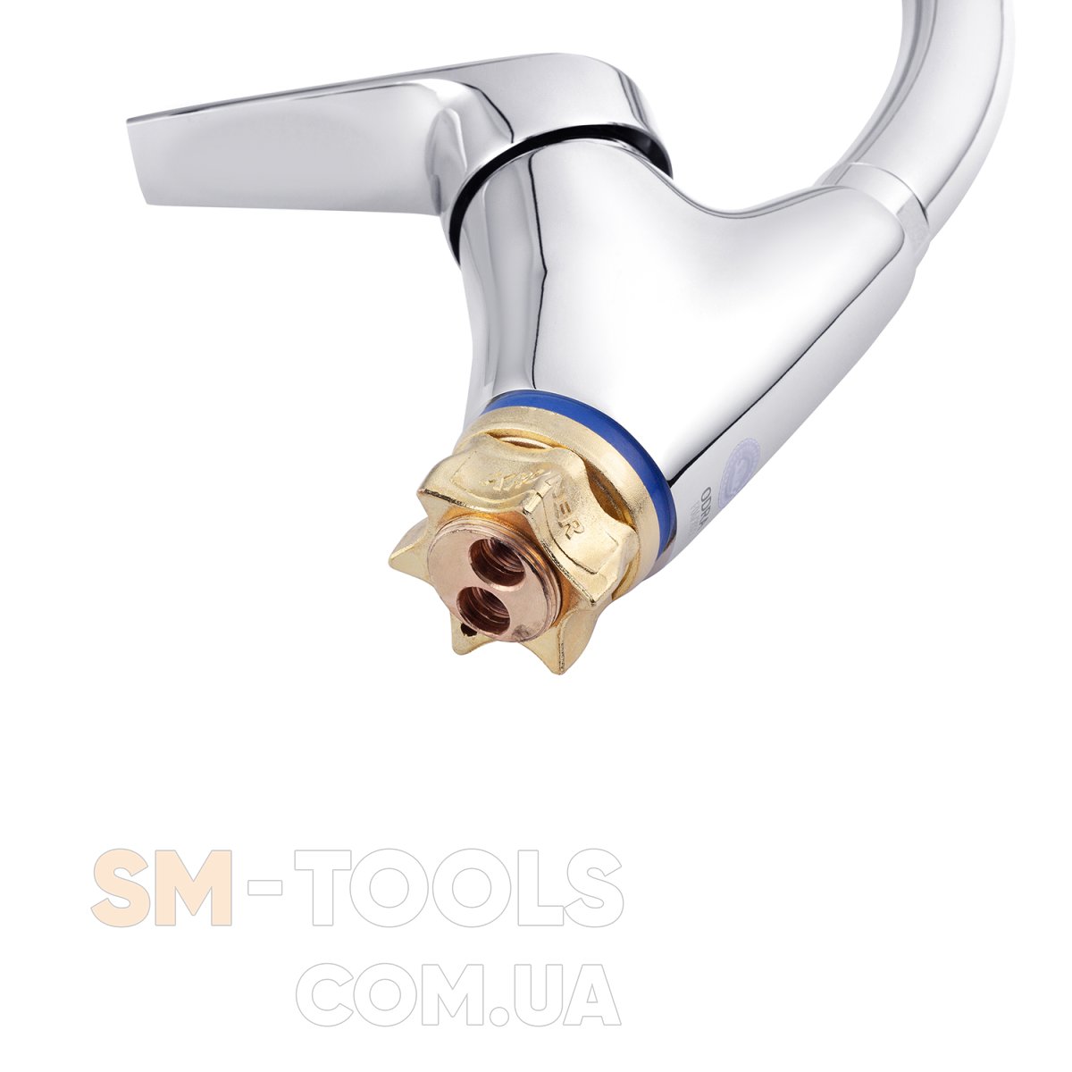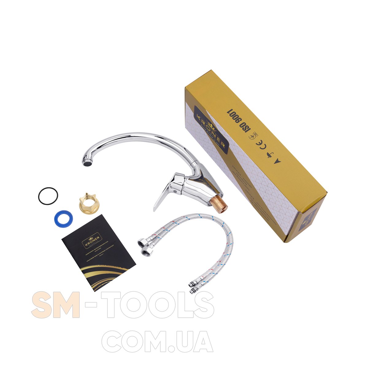 Смеситель для кухни Kroner KRM Odra - C034 - идеальный выбор для вашей кухни. Изготовлен из высококачественного силумина, гарантирует прочность и долговечность. Обладает привлекательным глянцевым хромированным цветом, что придает ему элегантность. Смеситель оснащен картриджным механизмом смешения, позволяющим удобно регулировать температуру воды. Его уникальная С-образная форма излива обеспечивает удобство при наполнении посуды или мытья продуктов. Наслаждайтесь функциональностью и стилем смесителя Kroner.Характеристики Смеситель для кухни Kroner KRM Odra - C034