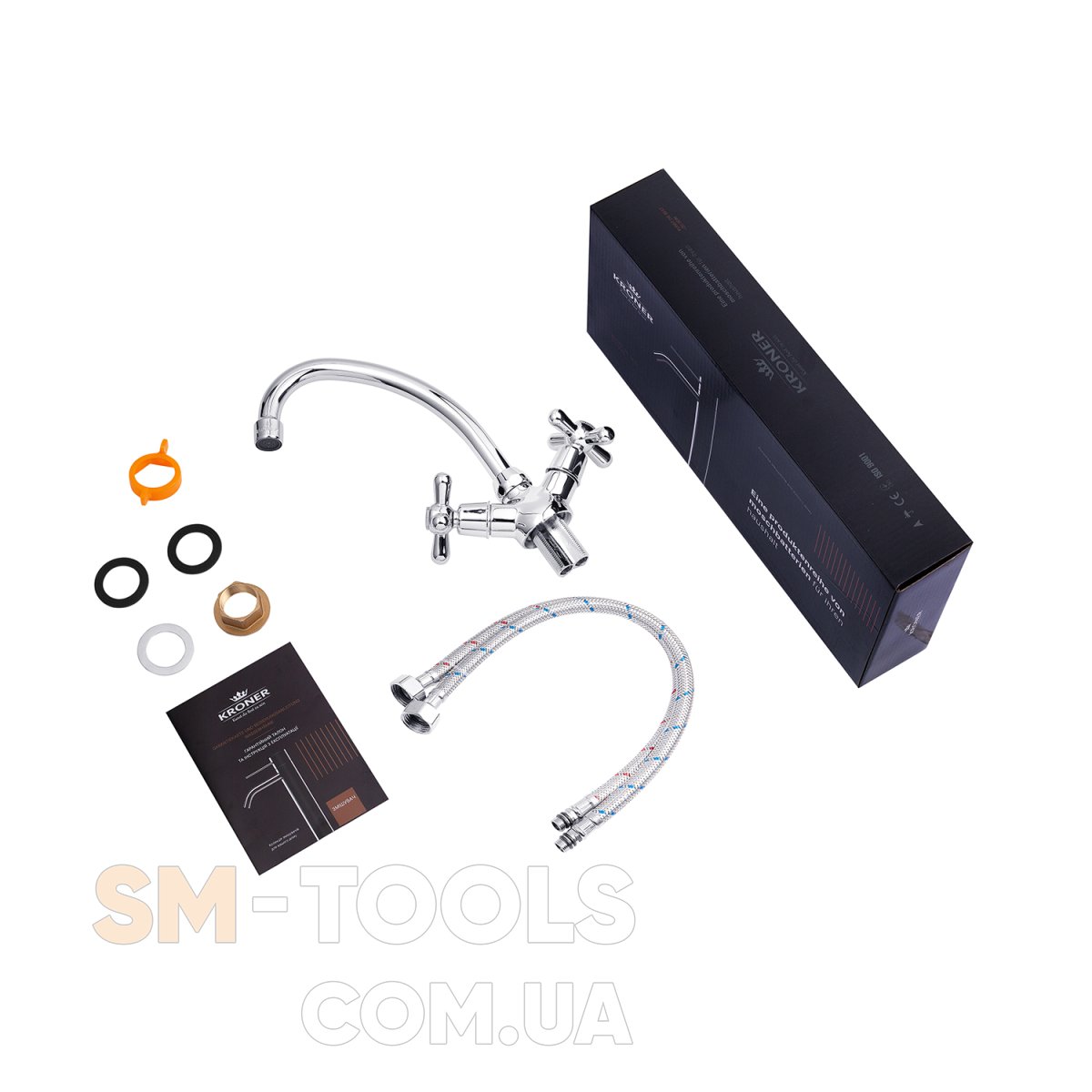 Смеситель для кухни Kroner KRP Royce-C030 изготовлен из высококачественной пищевой латуни, которая устойчива к воздействию коррозии, ударам и появлению трещин. Глянцевое хромированное покрытие не только повышает долговечность смесителя, но и придает ему привлекательность. Смеситель имеет вентильное управление, с помощью которого можно отрегулировать температуру и давление холодной и горячей воды. Выполнен в современном дизайне с поворотным изливом, который идеально дополнит интерьер кухни. , кг : 0,865Габариты упаковки, мм : 65х365х165Гарантия : 60 месяцевДлина излива, мм : 135Количество грузовых мест : 1Комплектация : Смеситель, гибкая подводка, крепеж, инструкция.Материал : ЛатуньМеханизм смешивания : Кран-буксаНазначение : Для кухниДополнительно : Производитель оставляет за собой право вносить изменения в комплектацию и конструкцию изделий, что не ухудшают качество, без предварительного уведомления.Поверхность : ГлянцеваяРабочее давление, бар : До 3Серия : RoyceСтрана регистрации бренда : ГерманияСтрана-производитель : ПольшаТип изделия : СмесительТип управления : ВентильныйЦвет : ХромСпособ монтажа : ВрезнойВысота, мм : 235Ширина, мм : 165Глубина, мм : 165Отверстие под смеситель : 1Диаметр подключения шлангов : 1/2''Высота излива, мм : 185Диаметр монтажного отверстия, мм : 35Расход воды, л/мин : До 13Тип излива : ВозвратныйТип крепления : ГайкаТип подвода : ГибкийВстроенный кран для питьевой воды : НетПредставление питьевой воды : НетУправление подачей питьевой воды : НетФорма излива : С-образнаяВ случае, если Вы решитесь прикупить Смеситель для кухни Kroner KRP Royce - C030 то обязательно получите обслуживание. Популярный онлайн-маркет sm-tools.com.ua предоставляет объемистый ассортимент продуктов в серии Смесители для кухни. Мы проводим деятельность совместно с популярными поставщиками: ADELL, Lidz и похожими. Уже длительный отрезок времени Смесители для кухни популярная категория на надежном сайте SM-TOOLS. Приобрести и получить быструю доставку продукции "медицинские товары и техника" клиент всегда может в Славянск и другие города. Змішувач для кухні Kroner (KRP) Edelstahl Klassisch-SCH035PVD CV024351, Смеситель для кухни Kroner (KRP) Edelstahl Klassisch-SCH035PVD CV024351 и Смеситель для кухни Kroner (KRP) Bayern-С030 CV007317, а также другие изделия, среди них автомобильный пылесос Вы можете купить задешево в онлайн-каталоге.