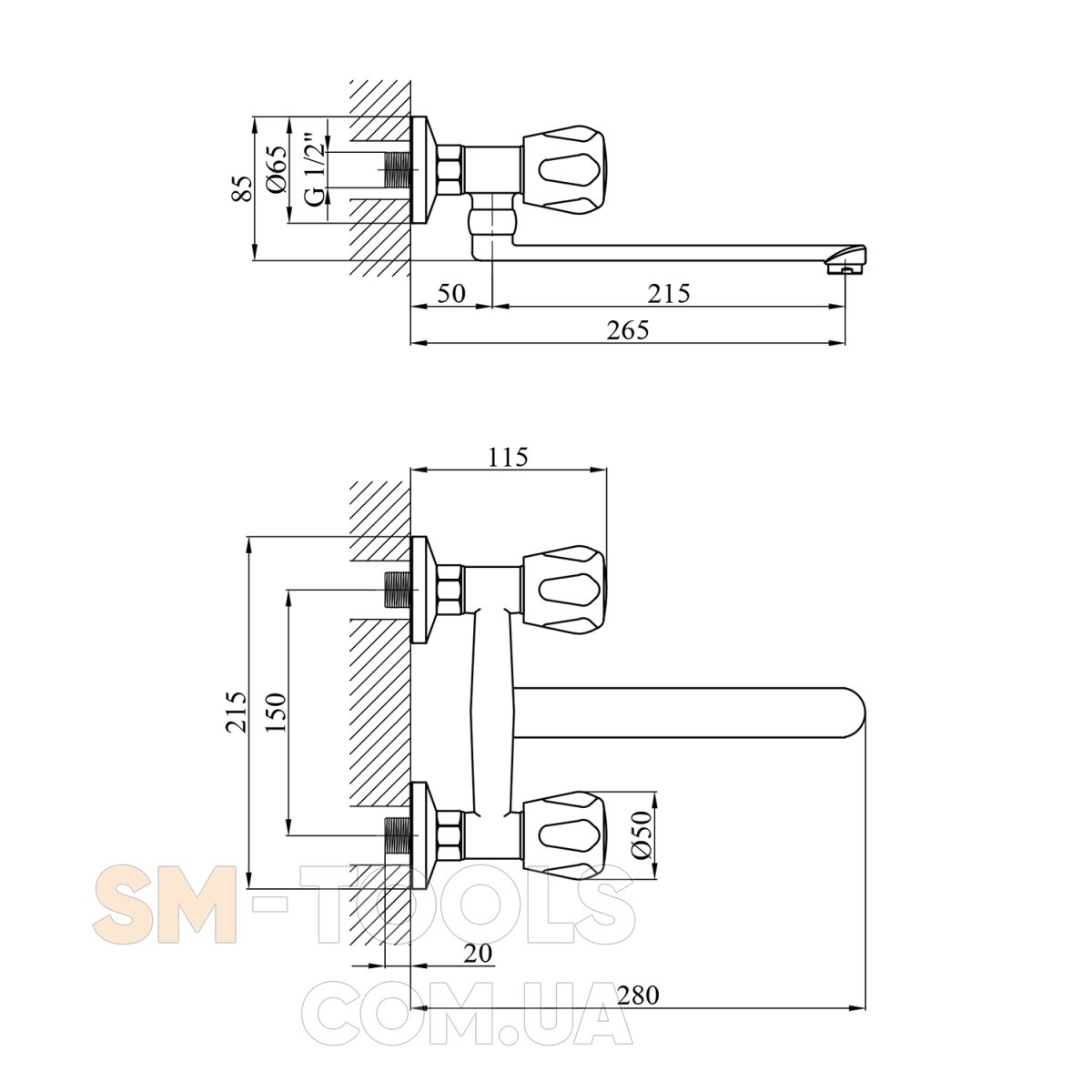 Тип изделия : СмесительТип управления : ВентильныйСпособ монтажа : НастенныйВысота, мм: 85Ширина, мм: 215Глубина, мм: 280< /