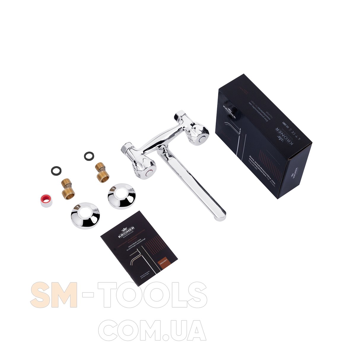 Смеситель для кухни настенный Kroner KRP Hamburg - C040 - идеальный выбор для вашей кухни. Изготовлен из высококачественного силумина, обеспечивает надежность и долговечность использования. Хромированный цвет и глянцевая поверхность придают ему стильный вид, вписываясь в любой дизайн кухни. Прямая форма излива позволяет легко наполнять большие кастрюли и удобно мыть посуду. Механизм смешения на основе кран-буксы способствует точной регулировке температуры воды. Наслаждайтесь функциональностью и стилем смесителя Kroner.Характеристики Смеситель для кухни настенный Kroner KRP Hamburg - C040