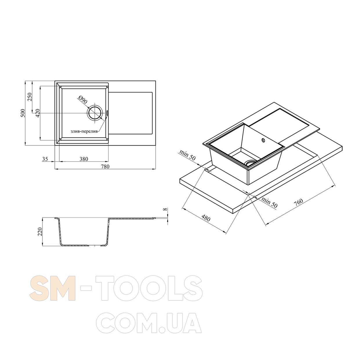 Форма : ПрямоугольнаяВысота, мм: 220Ширина, мм: 780