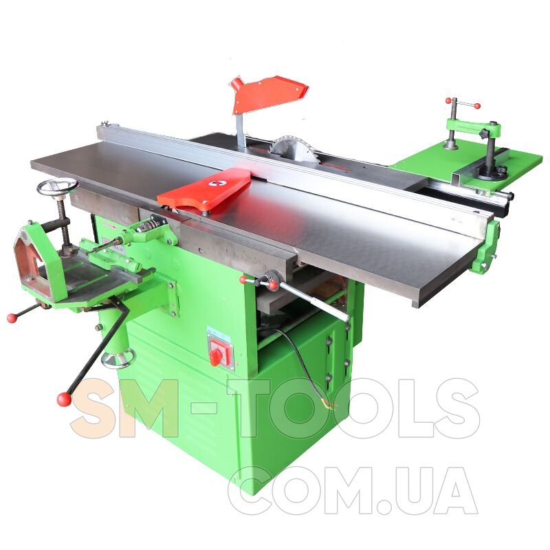 Станок оборудован целым рядом дополнительных комплектующих, помогающих в выполнении тех или иных работ. Станок такого типа станет незаменимым в небольших мастерских и рабочих помещениях, так как многофункциональный инструмент для обработки заготовок из древесины.