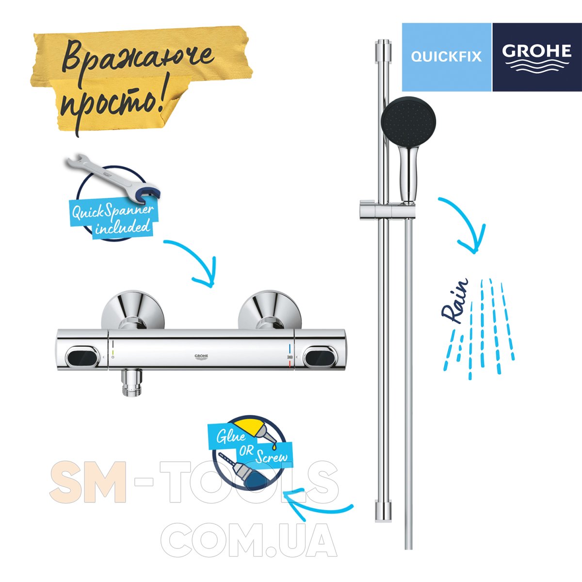 Если Вы решитесь закупить Смеситель термостатический для душа Grohe QuickFix Precision Flow 34805001 то обязательно получите гарантию. Популярный онлайн-шоп SM-Tools предоставляет наибольший ассортимент товара в собрании Смесители для душа. Мы работаем в синергии с популярными брендами: Ibergrif, Tres и остальными. Длительный отрезок времени Смесители для душа самый популярный раздел в магазине техники sm-tools.com.ua. Купить и получить удобную доставку товаров "уценка" потребитель всегда может в город Константиновку или любой другой уголок Украины. Термостат для душу Grohe QuickFix Precision Trend (1022172432), Термостат для душа Grohe QuickFix Precision Trend (1022172432) и Смеситель для ванны и душа REA LUNGO BLACK GLOSSY настенный с изливом *, и иные изделия, как например, машинку на пульте Вы можете приобрести по бюджетной цене в нашем онлайн-шопе.