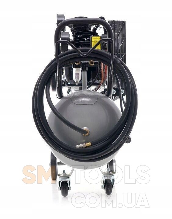 Небольшой вес компрессора делает его очень эргономичным, он также имеет автоматическую систему смазки, фильтрацию воздуха, редуктор давления и транспортные колеса.