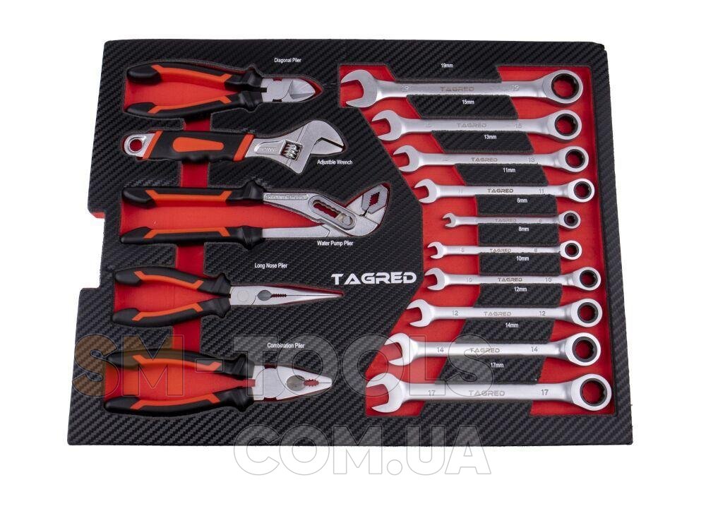 Ключи комбинированные: 6; 8; 10; 11; 12; 13; 14; 15; 17; 19 мм Плоскогубцы Жаба Шведский разводной ключ Плоскогубцы Кусачки2 вставка: