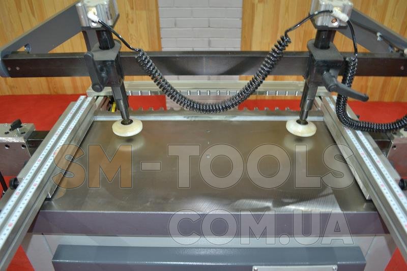 Параметры сверлильно-присадочного станкаНебольшая массивная конструкция которую можно без проблем перемещать. Вес 275 килограмм, но благодаря ножкам размещенных по краям, под него можно заехать роквой и без проблем перемещать. Большие габариты придает складная линейка, для нормальной работы нужна площадь 3.5 на 3.5 метра. Стол имеет размеры 88 x 42.5 сантиметра. Над ним установлено два пневматических зажима на которых можно регулировать силу зажимания.