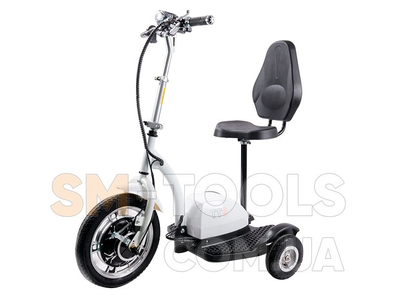 ЭЛЕКТРОСАМОКАТ трехколесный с сиденьем(СИДЕНИЕ — СПИНКА, ПЕРЕДЕННЫЙ АМОР белый) T06-2 48v500W 12AH-SMПростой в эксплуатации электросамокат T06-2 48v500W 12AH-SM белого цвета.Двигатель с бесщеточным мотором-ступицей 48V, мощностью в 48V. гарантирует быстрый разгон.Максимальная скорость 35 км составит конкуренцию общественному транспорту при рекомендованной нагрузке до 120 кг.Энергоэффективность и быстрая зарядка достигаются литий-ионным аккумулятором с емкостью 12АH.Время полной зарядки составляет 6 ч - 8 ч.Запас хода до 40 км.Самокат с передним электрическим приводом бесшумный.< Рекомендуемый ландшафт - асфальтированные и дорожные покрытия.Модель T06-2 48v 500W 12AH оснащена хорошими тормозами. Безопасность на дороге обеспечат боковые катафоты, отражатели и стоп-сигнал.Мощная светодиодная фара с направленным светом хорошо освещает дорогу и экономически тратит батарею.Гарантия 12 месяцев. >Цвет : БелыйВозрастная категория : ВзрослыеНазначение : Для взрослыхМаксимальная рекомендуемая нагрузка, кг : 100-130 кг: 120 кгмаксимальная мощность : 500 Вт Максимальная скорость км/ч: 30.1 - 40 км/ч: 35 км/ч. Запас хода, км: 40-80 км: 40 км. Сидение: С сиденьем. Вес брутто, кг. 50Вес, кг : 42Габариты общие ДхШхВ, мм : 77х45х64Защита от влаги : IP54Подвеска и амортизация : Без стабилизацииМатериал : АлюминийТормозной путь, м : 7Способ торможения : Тормозной барабанДиаметр колеса : переднее 16" * 2,25", задние 10"Ландшафт : асфальт/почваВремя полной зарядки, час : 6-8Емкость, А*ч : 12Емкость, v : 48Тип АКБ : литий-ионныйМаксимальный угол подъема, град : 10