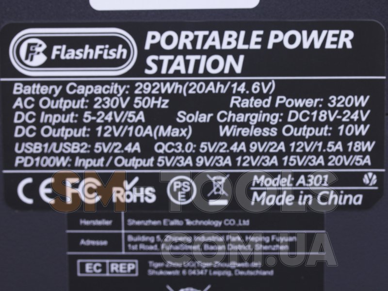 FlashFish A301 - усовершенствованный блок питания для электронных устройств емкостью 80000 мАч, который обеспечит вас питанием в ситуациях, когда электросеть недоступна. .Портативная электростанция FlashFish A301 может использоваться как основной или резервный источник питания. Он мобильный и компактный, поэтому вы можете использовать его в любом месте дома или вне дома, брать его с собой в поездки и походы.Преимущества портативной зарядной станции FlashFish А301:< /- 2 розетки переменного тока PURE SINE WAVE, 1 порт USB-C мощностью 100 Вт, 2 порта постоянного тока, 2 порта USB-A, 1 порт QC3.0, 1 беспроводная зарядная панель.- С емкостью 292 Втч/80000 мАч и выходной мощностью переменного тока 320 Вт. Имея две розетки переменного тока с чистой синусоидой, Flashfish A301 может питать устройства мощностью менее 320 Вт, такие как ноутбуки, дроны, небольшие морозильные камеры для телевизоров, небольшие вентиляторы и т.п.; Как резервная литиевая батарея емкостью 292 Втч A301 обеспечивает достаточное количество энергии для работы основных устройств в течение нескольких часов, в зависимости от фактической мощности. - Flashfish A301 может стабильно обеспечивать максимальную мощность 100 Вт через порт USB-C PD, что делает его достаточно мощным для супер-сверхбыстрого порта электронных устройств Type-C, это означает, что ваш телефон/планшет/ноутбук достигнет 80% мощности в течение половины часа.- Встроенный светодиодный свет очень полезен для исследования незнакомого места, ночного кемпинга или чрезвычайной ситуации . Включает режим чтения света (3 уровня яркости), режим SOS (мигание SOS/режим стробоскопа) и режим точечного освещения.- Для полной зарядки электростанции одновременно через настенное зарядное устройство переменного тока и порт PD Type-c мощностью 100 Вт ( кабель для зарядки PD входит в комплект) требуется всего 3,5 часа. Кроме того, Flashfish A301 можно заряжать отдельно от адаптера переменного тока / адаптера прикуривателя / PD-Type-c / солнечной панели.Тип : Портативная зарядная станция. /ч : 0.292Емкость батареи, мАч : 80000Номинальная мощность, Вт : 320Максимальная мощность, Вт : 600Тип аккумулятора : Литий-ионные (Li-ion)<