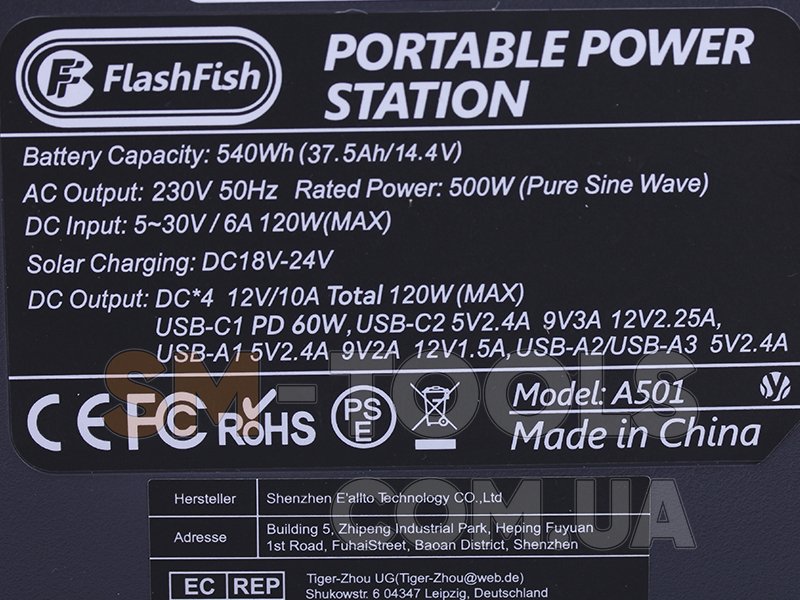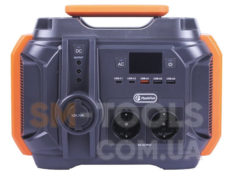 Портативная электростанция FlashFish A501 - это источник питания на 150 000 мАч, 500 В, который пригодится просто по дому или за городом. при отключении электричества. Купить зарядную станцию – это обеспечить себя резервным источником питания, к которому можно подключить все основные устройства, поэтому можно не переживать, если вы останетесь без света. Используйте все возможности автономного источника питания дома и в пути. Решение купить автономный блок питания FlashFish A501 это то, что может обеспечить вам привычный уровень комфорта.Преимущества и особенности FlashFish A501- 11 разъемов для зарядки устройств, в том числе 4 порта постоянного тока, 3 разъема USB, 2 розетки переменного тока.- Станция зарядки телефона: с помощью разъема быстрой зарядки USB QC 3.0 вы можете зарядить свое устройство на 80% за 30 минут.- Полная зарядка электростанции от сети всего за 4-5 часов, более 800 циклов работы.- Жидкокристаллический информативный дисплей и два режима светодиодного фонарика: рассеянный свет для чтения и SOS-фонарик.- Защита BMS от перегрузок, прыжков напряжения, перепадов температуры, что обеспечит стабильную работу самого блока питания и подключенных к нему устройств.- Экологичность: портативный блок питания работает автономно и не влияет на окружающую среду.Тип : Портативная зарядная станция Емкость зарядной станции, кВт/ч : 0.54Емкость батареи, мАч : 150000Номинальная мощность, Вт : 500Максимальная мощность, Вт : 1000Назначение : Бытовая Тип аккумулятора: Литий-ионные (Li-ion)Разъемы: 2 x розетки 220В; 4 x DC 12, 10А; 1 x прикуриватель DC 12, 10А; 1 x USB-A, QC 18W; 2 x USB-A, 5 В/3.1 А; 1 x USB-C, 18WКомплектация: Зарядная станция; Руководство пользователя; Автомобильное зарядное устройство от прикуривателя; Адаптер питания от 220ВЦвет : Черно-оранжевыйМатериал корпуса : ABS пластикВес, г : 6400Размеры, мм : 325x195x235Страна производитель : КитайГарантия: 12 месяцев