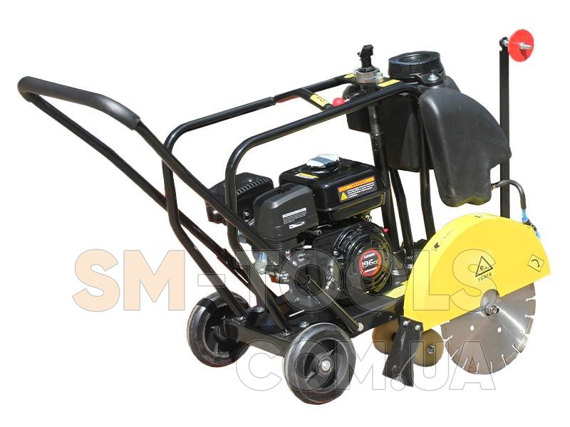 Мощность двигателя. Резцовый аппарат оснащен производительным силовым агрегатом, обеспечивающим достаточную мощность для резки твердых материалов. Диаметр диска. Шворезник оснащен надежным диском, обеспечивающим глубину шва 80 мм. Мобильность. Машина оснащена колесами или ручками для удобства перемещения по рабочей площадке.Принцип работыДиск с острыми зубами или алмазными сегментами вращается на высокой скорости. При этом материал разрушается и удаляется, образуя необходимый шов или паз. Особенностью швонарезателя является способность резать материалы, которые обычно сложно обработать другими инструментами. Преимущества использования швонарезчика Высокая производительность. Позволяет быстро и эффективно производить швы и пазы, что существенно ускоряет процесс строительства или ремонта. Точность и качество резки. Благодаря специальным дискам и возможности регулировки глубины резки, швонарезчик обеспечивает высокую точность и качество работы. Универсальность. Используется для обработки различных материалов, позволяя создавать швы и пазы в бетоне, асфальте, камне и других поверхностях. Безопасность. При работе со швонарезателем необходимо соблюдать меры предосторожности, такие как использование защитных очков, наушников и специальной одежды. Важно следовать инструкциям изготовителя и правилам работы с инструментом. Техника требует регулярной проверки и обслуживания для поддержания их работоспособности. Это включает очистку от пыли и грязи, смазку подшипников и замену изношенных дисков.Шворезчик - незаменимый инструмент для строителей, дорожных рабочих и других специалистов, занимающихся ремонтными и строительными работами. Обеспечивает высокую производительность, качество резки и универсальность в процессе выполнения поставленных задач. Конструкция двигателя : ОдноцилиндровыйТактность двигателя : ЧетырехтактныйОхлаждение двигателя : Воздушное Мощность двигателя, кВт : 4.78Мощность двигателя, л.с. : 6.5Тип запуска : Ручной стартерРасход топлива, л/час : 1.4Объем смазки, л : 0.6Объем бака для воды, л : 8< /