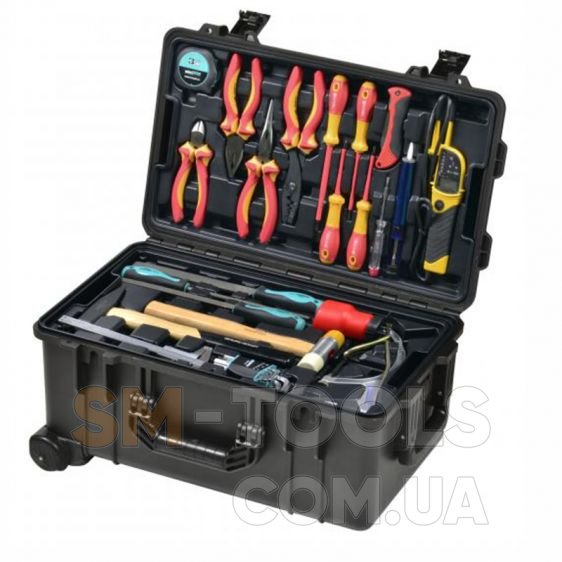 Другой инструмент: шарнир карданный 1/4 "40мм, 1/2" 78мм; плоскогубцы диэль. для обжима 225мм; пассатижи Диэль. 180мм; бокорезы Диэль. 200мм; тонкогубцы Диэль. 160мм; чем раскладной; рулетка 3м; оловоотсос 200мм; отвертка-тестер; тестер с LED-дисплеем; молоток инженерный 500г; молоток рихтовочный 32мм; напильник прямоку. 200мм; напильник круглый 200мм; напильник треуголен. 200мм; шестигранник 1,3мм укороч.; Набор шестигрн. 9ед.; Ножовка 6 "; масленка 150мл; штангенциркуль 150мм; скрайбером 225мм.