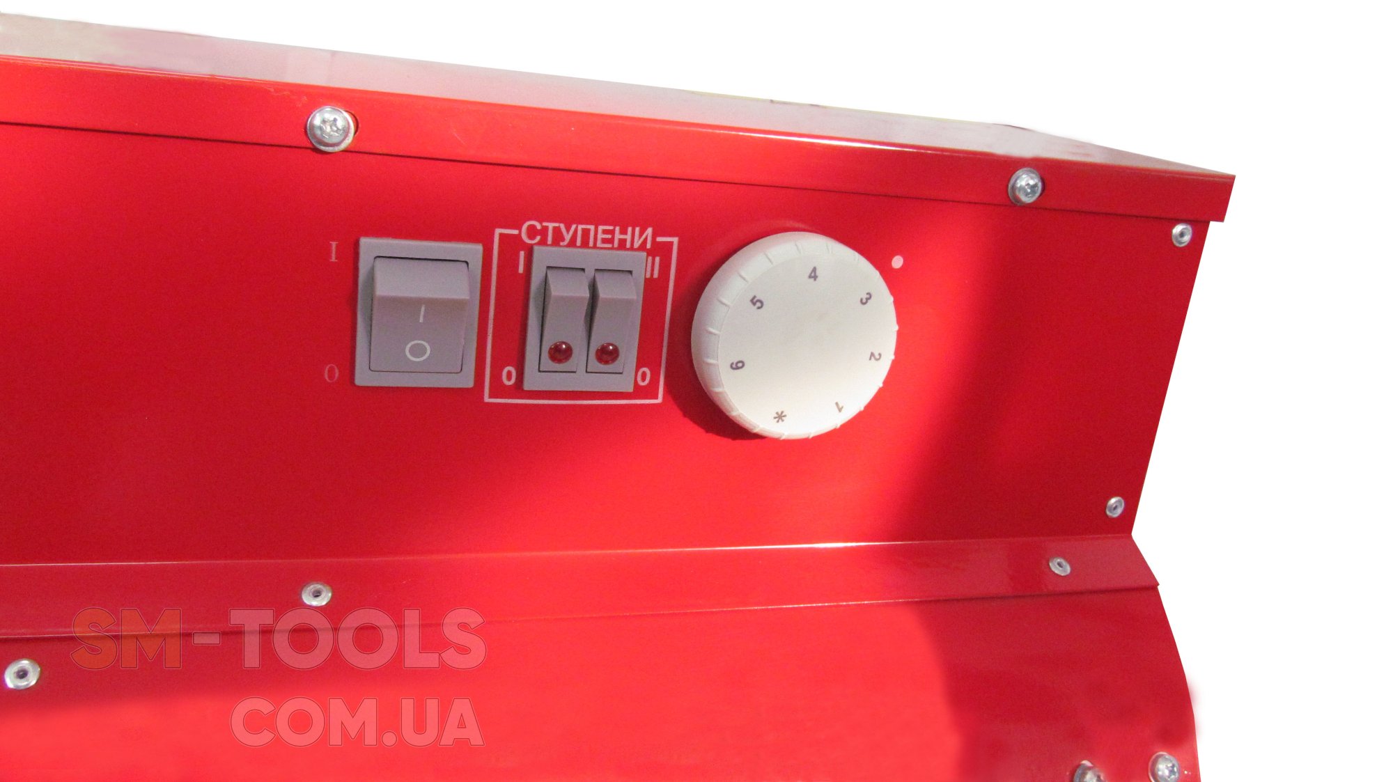 Регулировка температуры : даРегулировка мощности : даВес, кг. : 11Габариты корпуса, мм : 530х317х 440Максимальная мощность, кВт : 9Страна торговой марки : УкраинаКласс защиты : IP22Комплектация : картонная коробкаКабель в комплекте : нетНоминальный ток, А : 13.6Нагревательный элемент : ТЭННапряжение питания, В : 380Производительность, куб.м/ч : 800