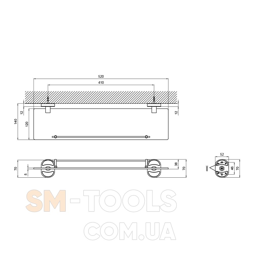 Описание Полка универсальная Lidz Oreo 0901 стеклянная (52*12 см) LDORE0901CRM22178 Chrome