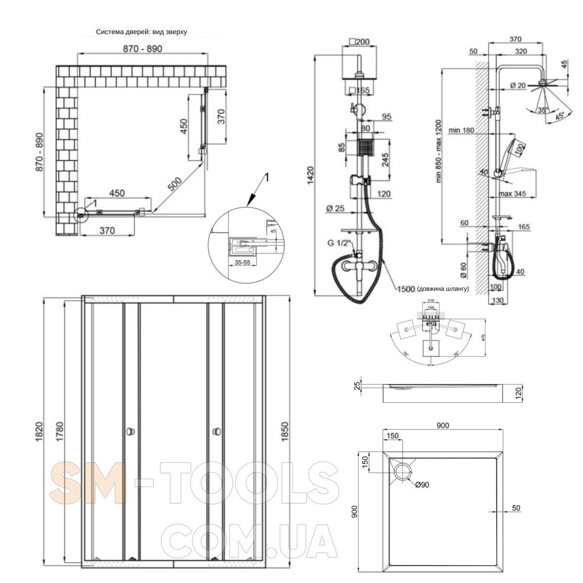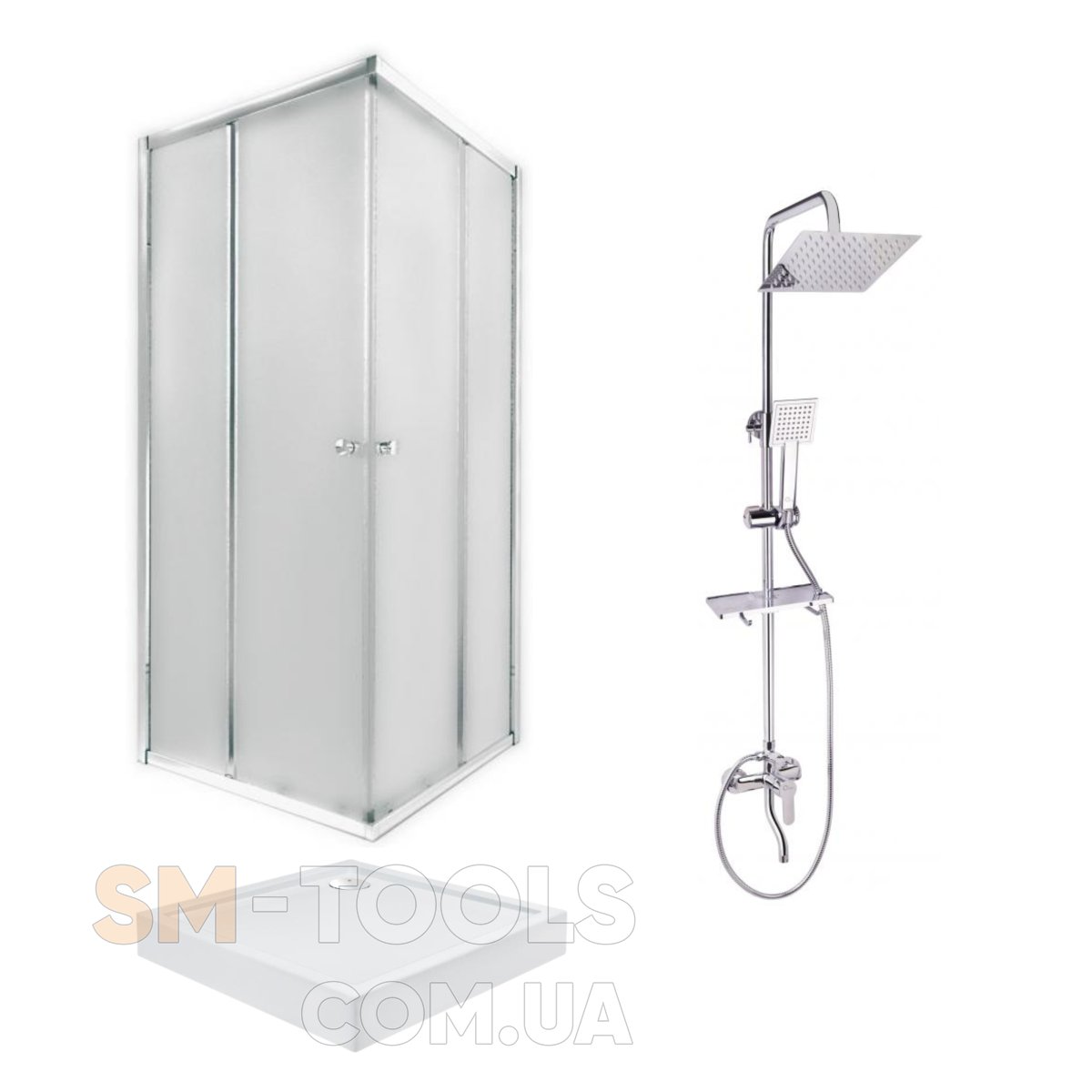 Описание Набор Qtap: Душевая кабина квадрат., 90x90 + Поддон + Душевая панель