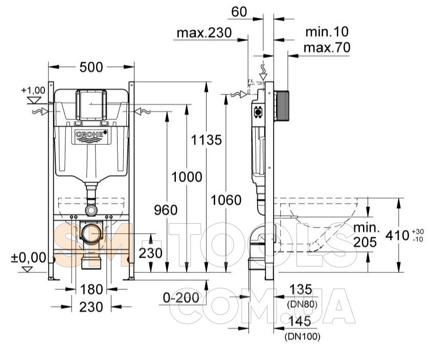 Система инсталляции для унитаза GROHE Rapid SL (1,13 м) с подключениями (38840000) – 1 шт.