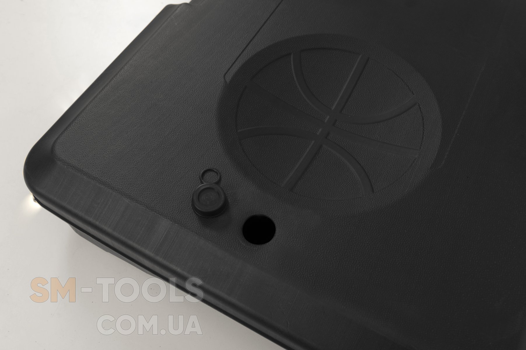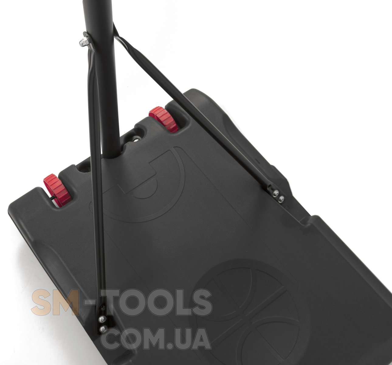 - Основа из черного формованного полиэтилена, оснащенная колесами спереди, ее можно наполнить водой или песком для обеспечения устойчивости во время игры.