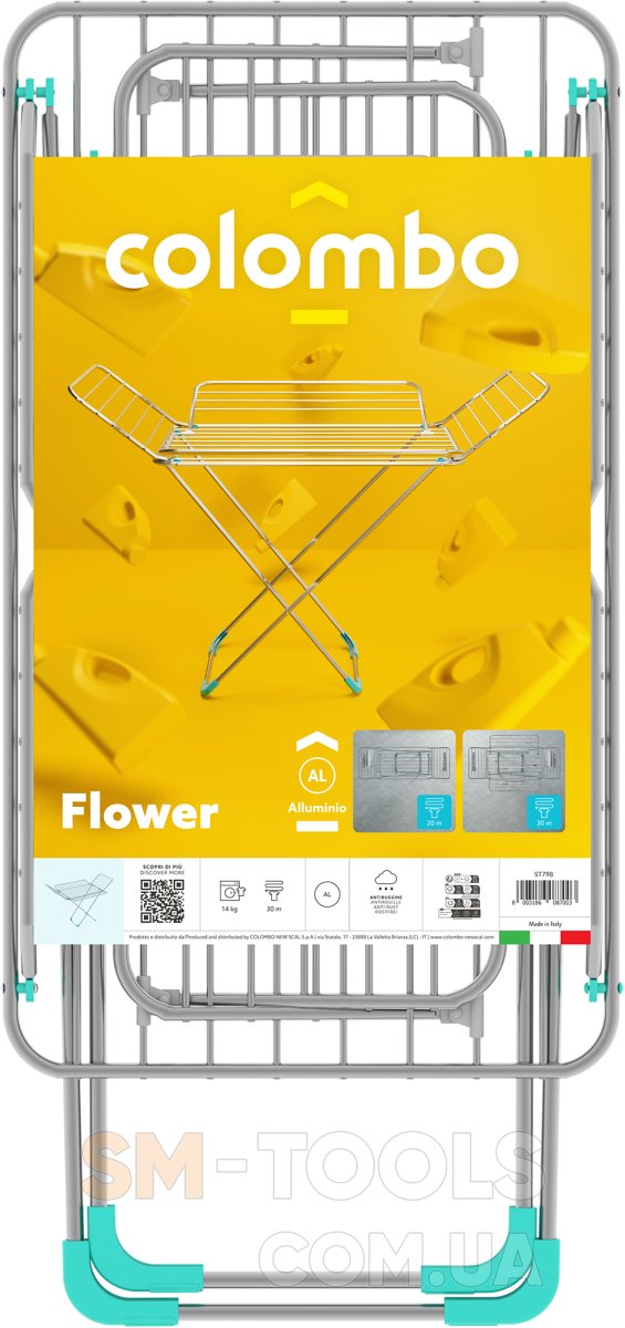 Сушка для белья напольная Colombo Flower (ST798) - классическая модель с расширенным функционалом. Рабочая поверхность изготовлена из алюминия, который устойчив к коррозионным процессам, что значительно продлевает срок эксплуатации. Качество гарантируют мастера из Италии, именно там проводятся все этапы изготовления деталей и сборки. Общая рабочая длина составляет тридцать метров, а максимальная нагрузка до четырнадцати килограммов. Сушилка имеет четыре откидные секции. Ножки оборудованы накладками для защиты напольных кровель.