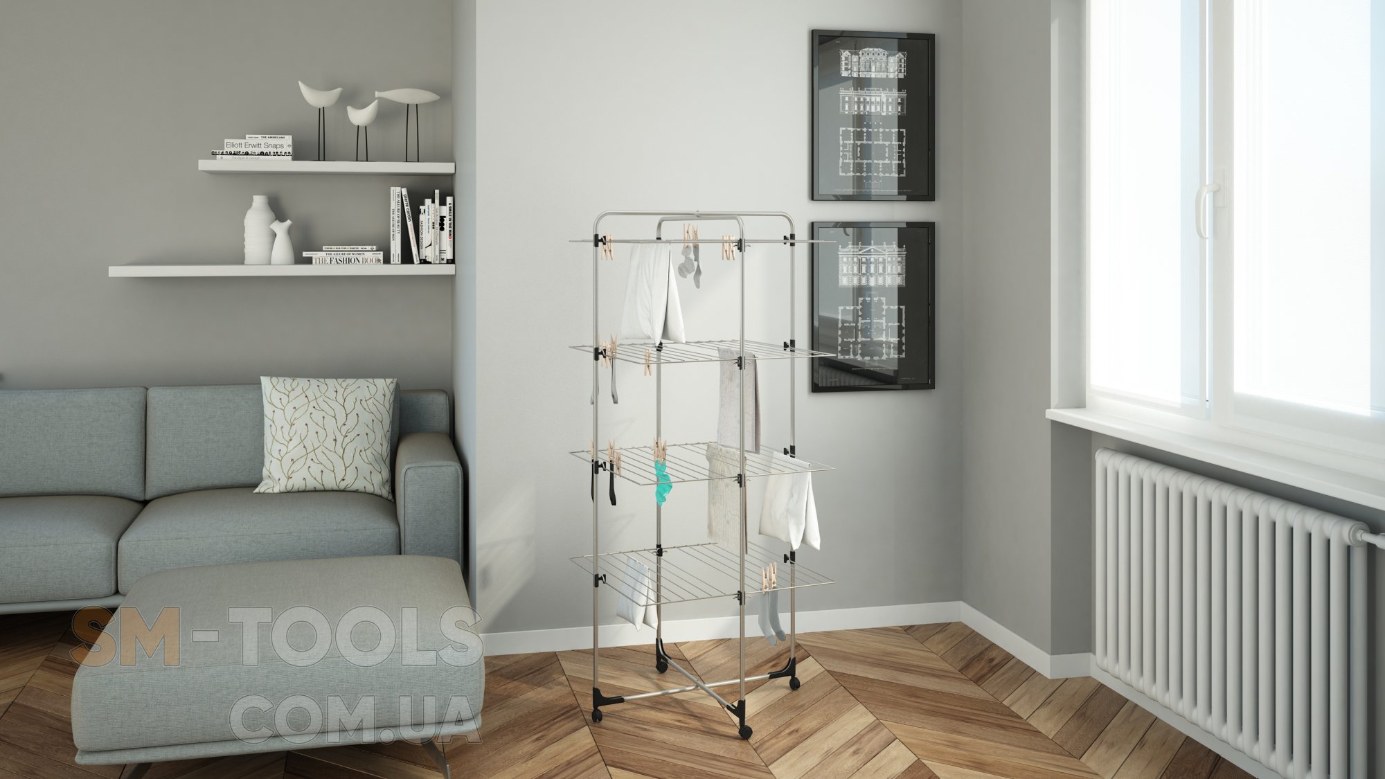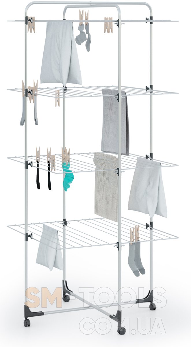 - Три уровня для развешивания белья.