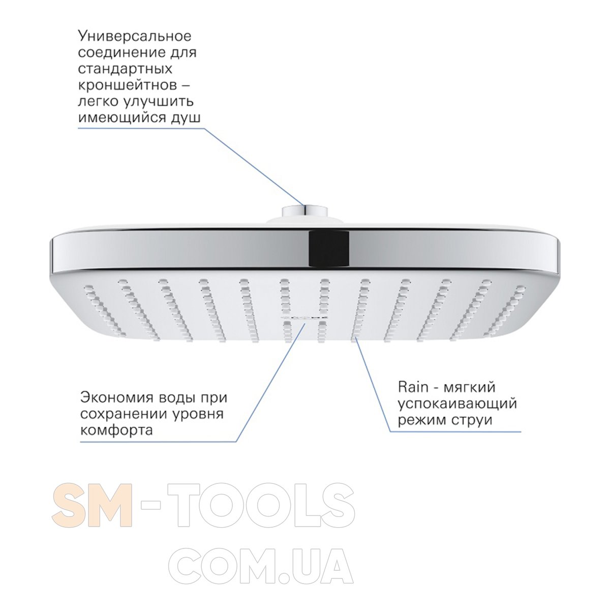 - 1 режим струи – Rain с размером 250 мм x 250 мм.