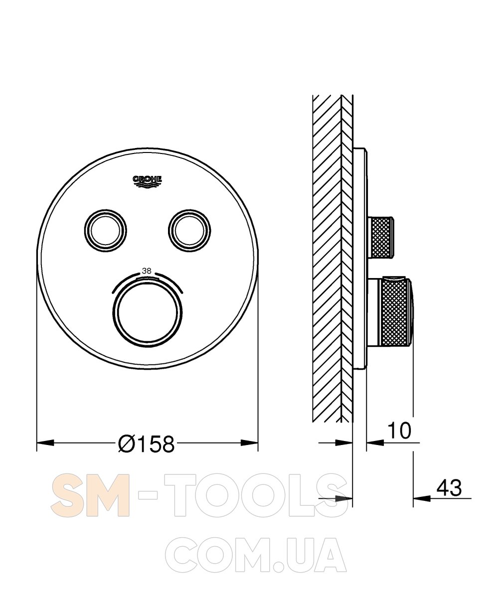 Термостат скрытого монтажа Grohe Grohtherm SmartControl с 2 кнопками управления (29507KF0)
