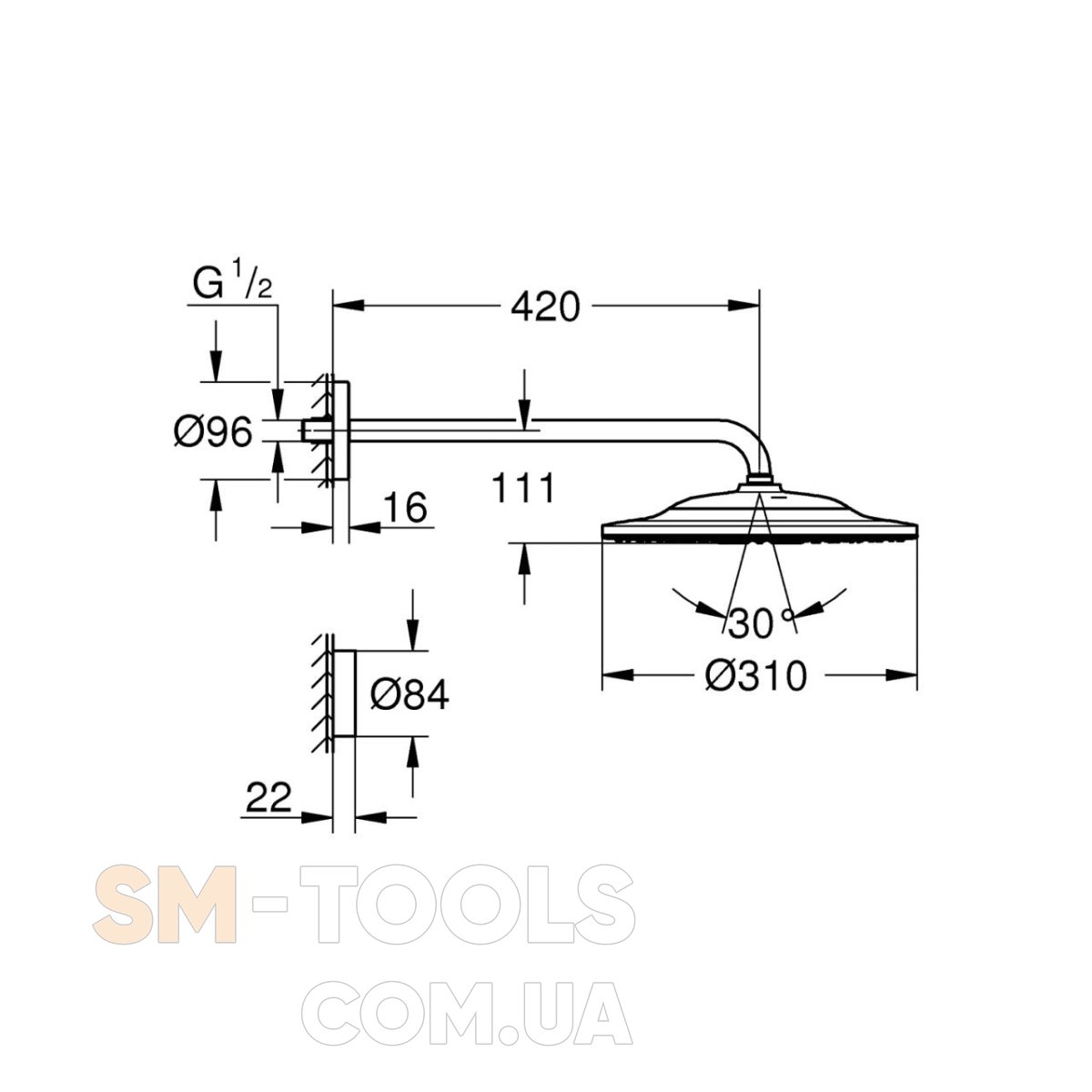 Верхний душ Grohe Rainshower 310 SmartConnect с душевым кронштейном (26640000)
