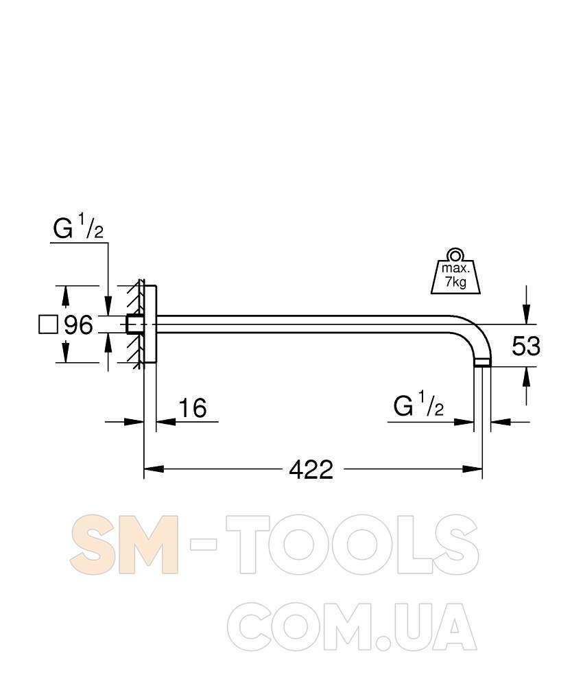 металл<br/>резьбовое соединение 1/2"<br/>с квадратной розеткой<br/>для использования со всеми верхними душами Rainshower<br/><strong>GROHE Long-Life Shine</strong> хромированное покрытие поверхности<br/>Бренд : GroheКолекція : RainshowerТип продукта : Настенный кронштейнДлина упаковки : 485 ммШирина упаковки : 195 ммВысота упаковки : 85 ммВес упаковки : 1.27 кгEAN : 4005176986000Країна виробник : КитайЕсли Вы захотели подобрать себе Душевой кронштейн Grohe Rainshower 422 мм (26145000) то получите качественное обслуживание. Интернет-каталог SM-Tools имеет гигантский перечень позиций в подгруппе Дополнительное оборудование к смесителям и душам. Мы проводим совместную деятельность с лучшими брендами: Paffoni, Fima и подобными. Уже достаточно много лет Дополнительное оборудование к смесителям и душам занимает топовые места на популярном сайте sm-tools.com.ua. Сделать бронь на удобную отправку продукции "товары для офиса" клиент может в город Павлоград и в любую точку страны. Кронштейн для верхнего душа Grohe Rainshower 26146000, Кронштейн для верхнього душу Grohe Rainshower 26146000 и Шланговое подсоединение hansgrohe Fixfit Porter E с держателем для душа 26485000, а также иные позиции, примером, сварочную маска Вы можете взять в рамках бюджета в нашем каталоге.