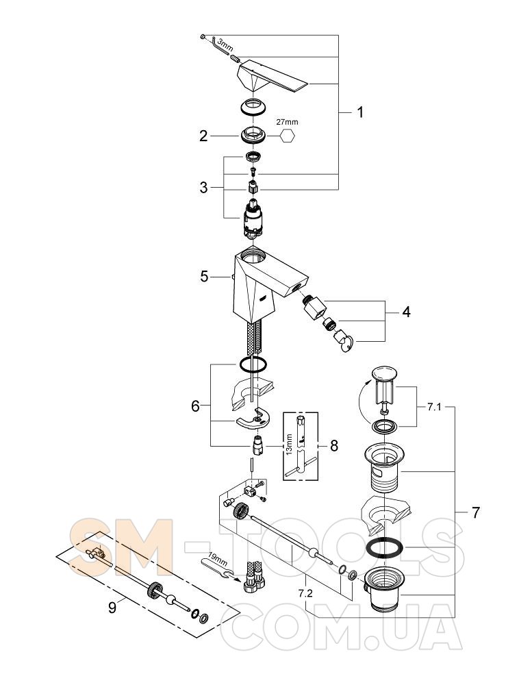 Описание Однорычажный смеситель для биде M-Size Grohe Allure Brilliant (23117000)