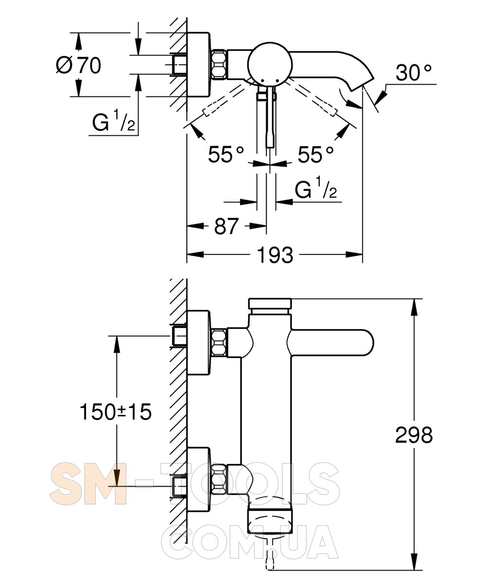 Описание Однорычажный смеситель для ванны Grohe Essence (25250KF1)