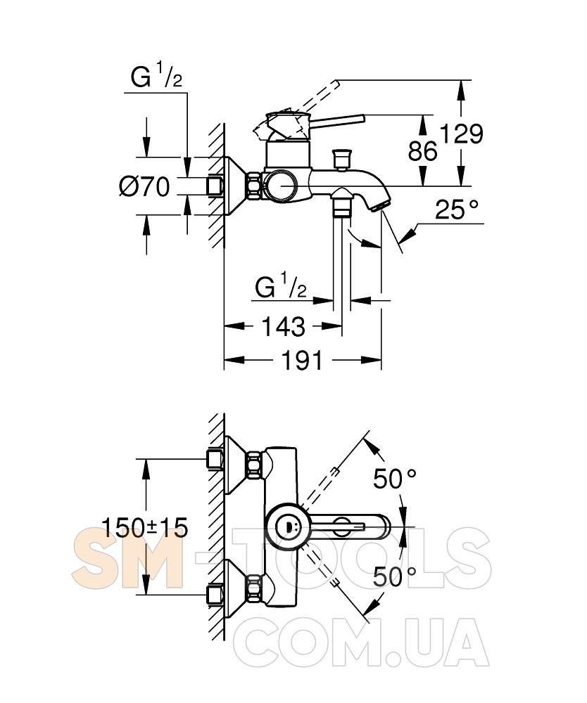 Описание Однорычажный смеситель для ванны Grohe Start Classic (23787000)