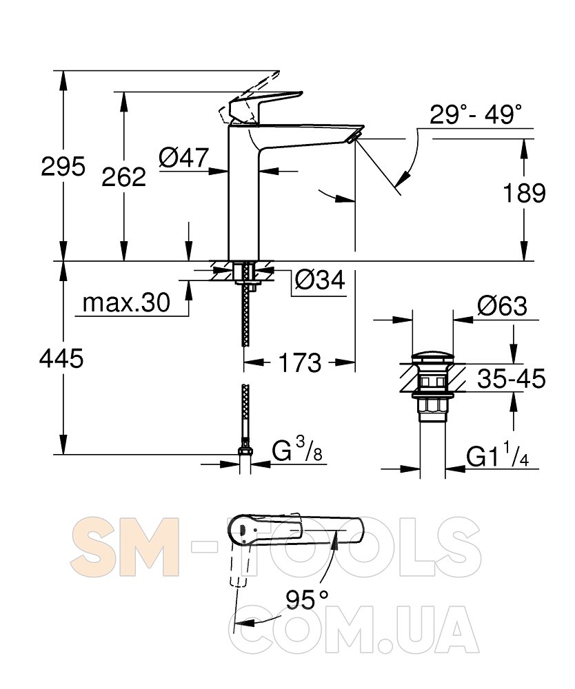 для отдельностоящих раковин монтаж на одно отверстие металлический рычаг GROHE SilkMove ES Керамический картридж 28 мм с энергосберегающей функцией (подача холодной воды при центральном положении рычага) регулировка расхода воды с ограничителем температуры GROHE Long-Life Finish - стойкое долговечное покрытие GROHE Water Saving ограничитель расхода воды 5,7 л/мин GROHE AquaGuide регулируемый аэратор нажимной донный клапан 1 1/4", пластик гибкая подводка GROHE QuickTool includedБренд : GroheКолекція : StartДиаметр картриджа : 28 ммДонный клапан : НажимнойНаличие термостата : Без термостатаРазмер смесителя : Размер XLТип монтажа смесителя : ОтдельностоящийТип управления : РычажныйДлина упаковки : 460 ммШирина упаковки : 235 ммВысота упаковки : 80 ммВес упаковки : 2.27 кгEAN : 4005176690273Країна виробник : ТайландКогда Вы решились забрать Однорычажный смеситель для раковины Grohe Start XL-размера (24165003) в подарок получите качество. Проверенный интернет-супермаркет sm-tools.com.ua предоставляет невероятный ассортимент позиций в сфере Смесители для умывальника. Мы заключили договоры о сотрудничестве с топовыми брендами: Damixa, NEWARC и прочими. Уже много лет Смесители для умывальника занимает топовую позиции в онлайн-каталоге SM-TOOLS. Оформить бесплатную отправку товаров "сантехника" Вы можете в город Каменское и по Украине. Смеситель для раковины Grohe BauCurve на 2 отверстия S-Size (20288000), Змішувач для раковини Grohe BauCurve на 2 отвори S-Size (20288000) и Однорычажный смеситель для раковины S-Size с гигиеническим душем Grohe QuickFix Start 23123003, а также иные изделия, среди которых игрушки для детей можно купить за копейки в онлайн-шопе.