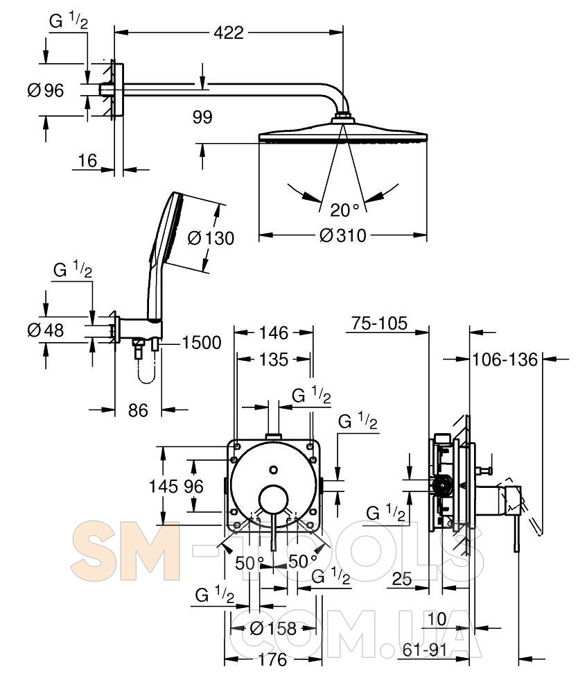 в комплект входят: Essence Однорычажный смеситель с переключателем на 2 положения (24 167) GROHE Rapido SmartBox Устраиваемая универсальная часть 1/2" (35 604) Верхний душ Rainshower Mono 310, 1 режим струи (26 557), душевой кронштейн 422 мм (26 146) Ручной душ Rainshower SmartActive 130 3 режима подключение для душевого шланга с держателем (26 658) Душевой шланг Silverflex 1500 мм. дополнительный регулятор расхода 9,5 л/мин для ручного душаБренд : GroheКолекція : EssenceДлина душевого шланга : 1500 ммКоличество режимов струи ручного душа : ТриМонтаж : Скрытый монтажНаличие излива для ванны : Без изливаТип душевой системы : Со смесителемДлина упаковки : 500 ммШирина упаковки : 380 ммВысота упаковки : 295 ммВес упаковки : 8.26 кгКраїна виробник : ГерманияКогда Вы решились прикупить Скрытая душевая система Grohe Essence Rainshower Mono 310 (25287000) то обязательно получите сервис. Популярный онлайн-маркет sm-tools.com.ua предоставляет наилучший выбор продуктов в рубрике Душевые гарнитуры. Мы сотрудничаем с качественными поставщиками: Jika, Venezia и иными. Уже достаточно долго Душевые гарнитуры популярный раздел в каталоге техники SM-TOOLS. Оформить быструю отправку продукции "товары для офиса" потребитель может в город Ровно и другие города. Верхний душ Grohe Grandera 210 с 1 режимом струи (27974IG0), Верхній душ Grohe Grandera 210 із 1 режимом струменю (27974IG0) и Верхний душ Hansgrohe Croma 280 26220670, а также другие продукты, как туристическое снаряжение Вы можете купить по акции на нашем сайте.