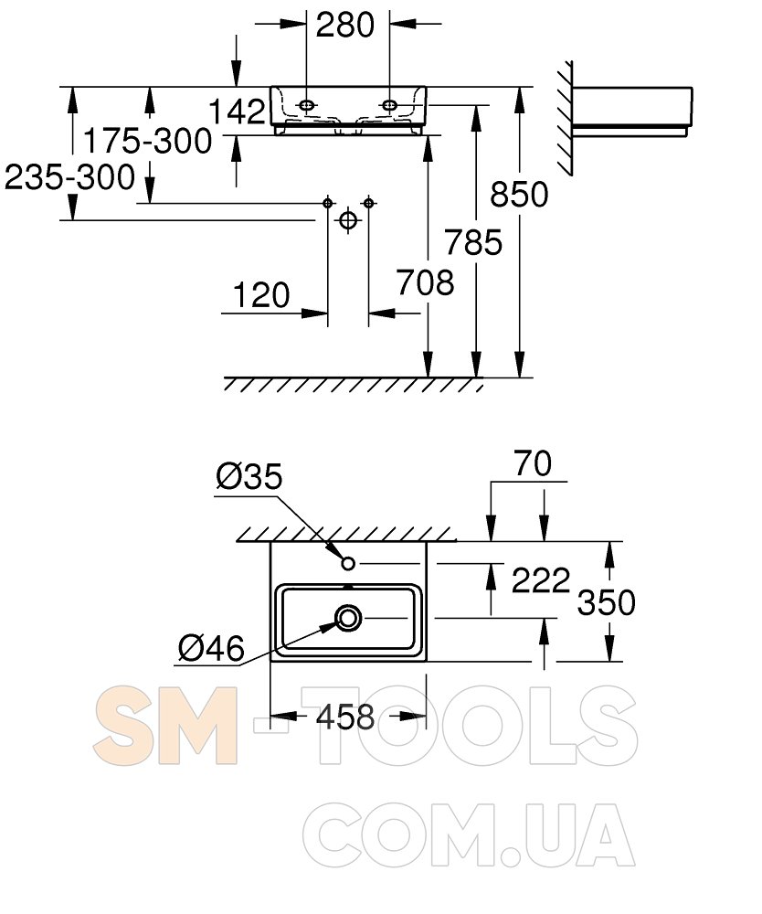 Описание Раковина подвесная Grohe Cube Ceramic 455х350 мм (3948300H)