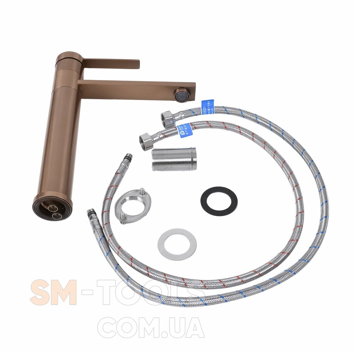 В комплектацию входят смеситель, крепеж, гибкая подводка.