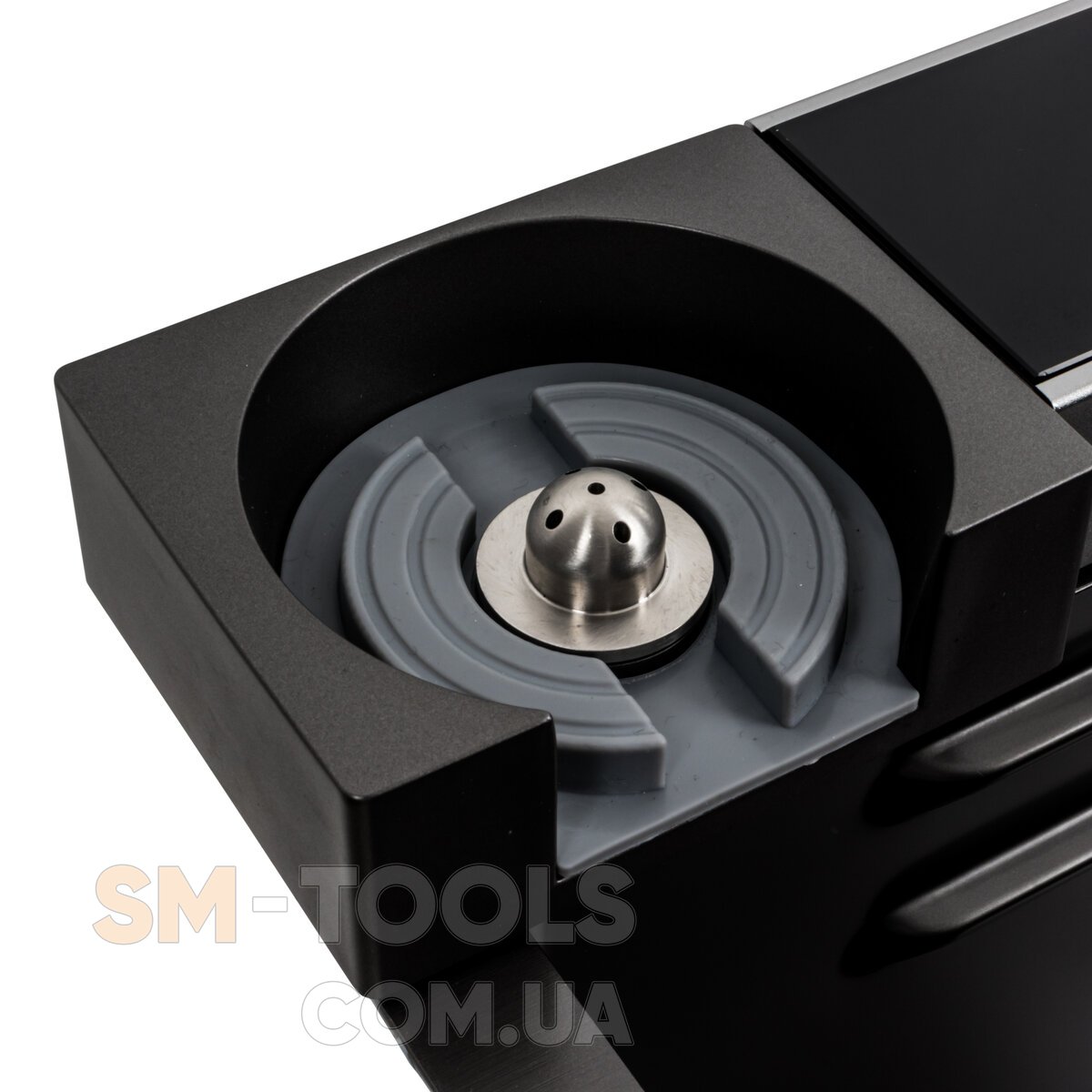 Смеситель выдвижной с душем, а также имеет удобный режим водопада, который можно менять, что позволяет комфортно мыть фрукты, овощи и зелень. Кроме того, этот набор позволяет сэкономить кухонное пространство благодаря VIP комплекту, включающему: разделочную доску влагостойкой породы дерева, лоток для размораживания продуктов и лоток для мытья овощей, фруктов и зелени, кран для питьевой воды.