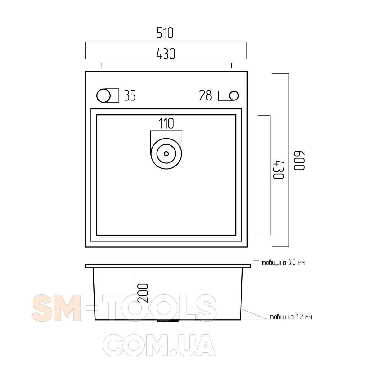 < Размер мойки (ШхГхВ), мм: 600x510x200Страна производителя: Китай