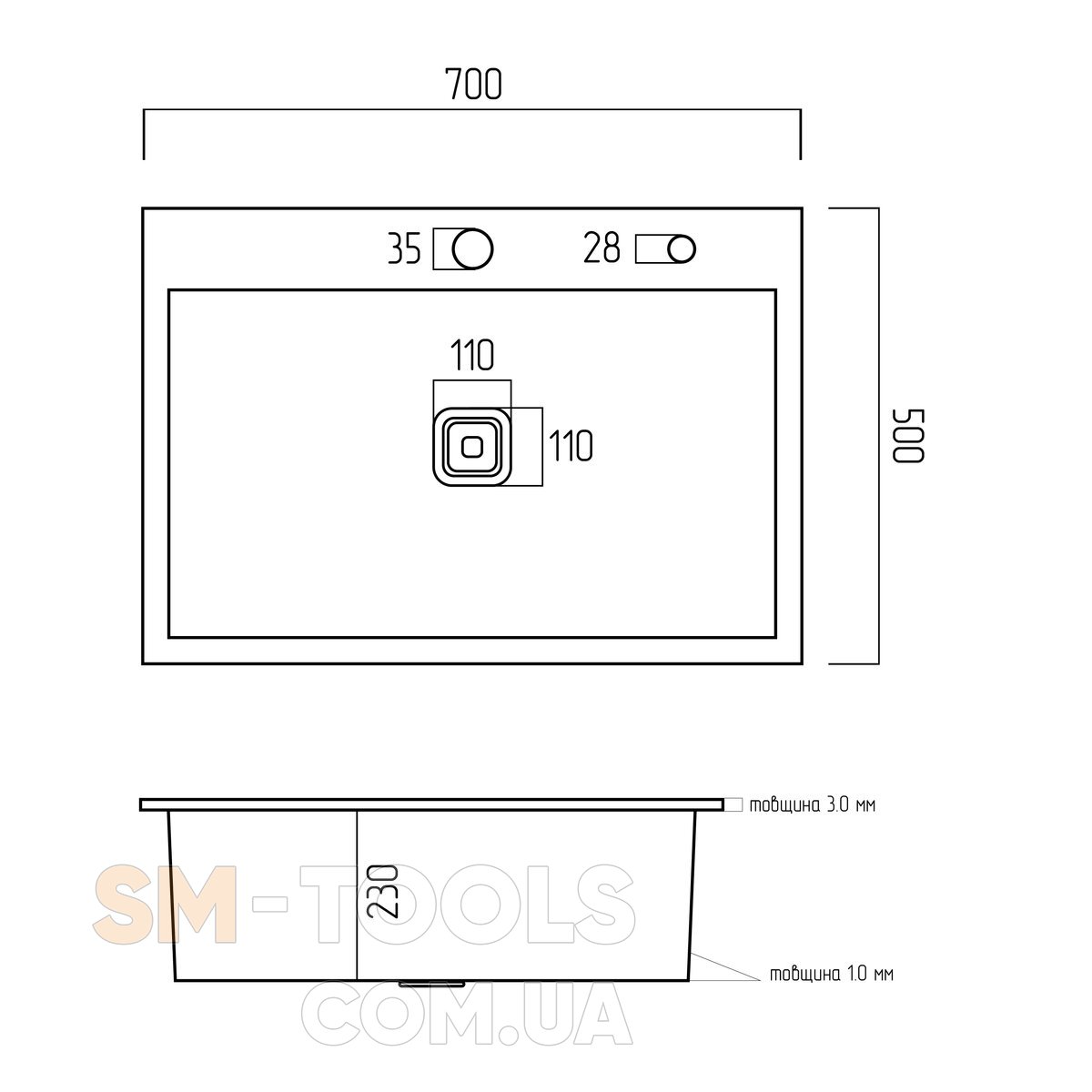 < Гарантия: 6 месяцев Расположение чаши: центральная Перелив: верхний Размер мойки (ШхГхВ), мм: 700х500х230Страна производителя: Китай