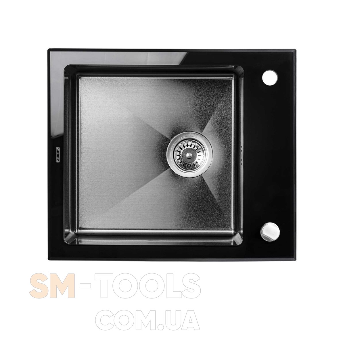 Кухонная мойка Platinum Handmade PVD BLACK GLASS 600х510х200 мм
