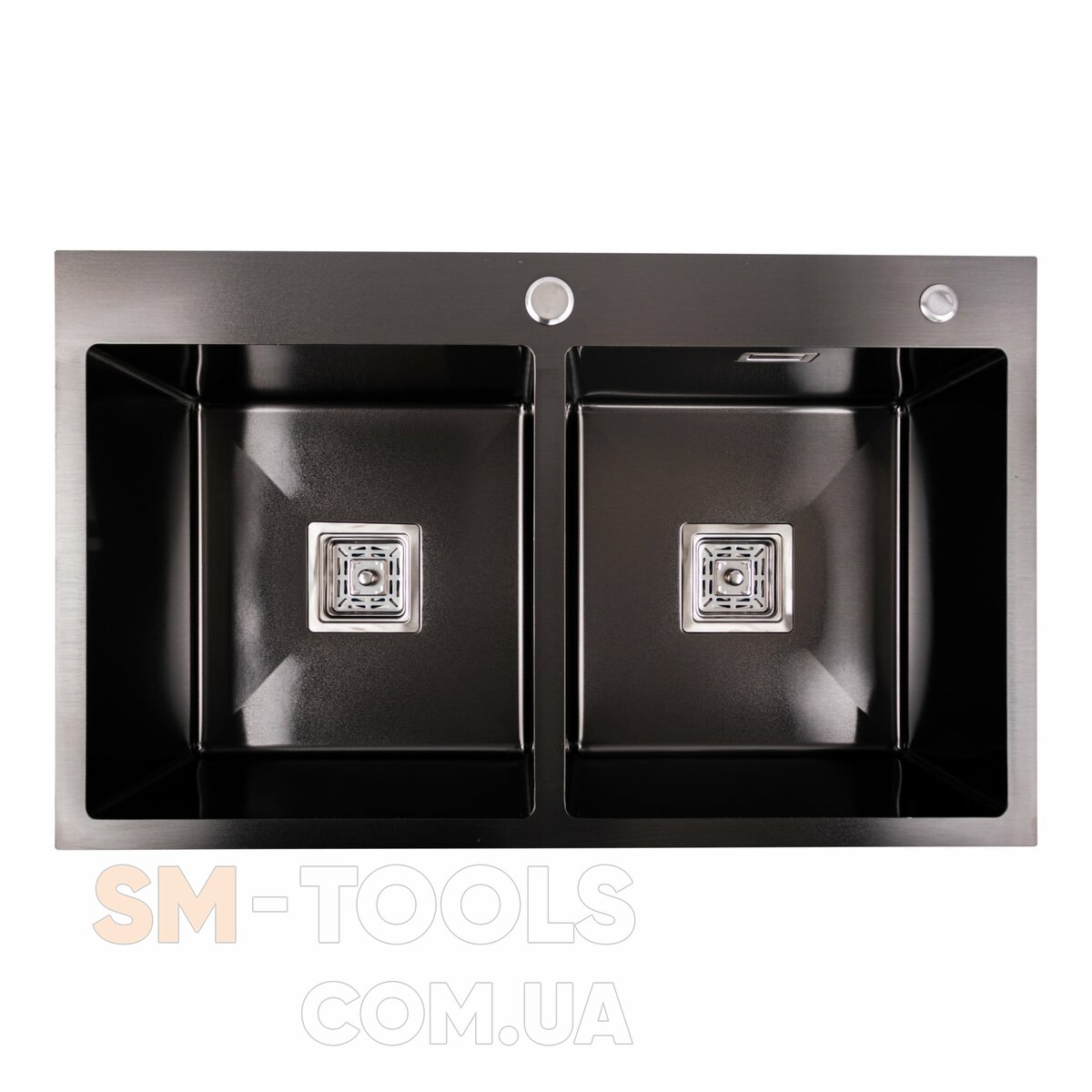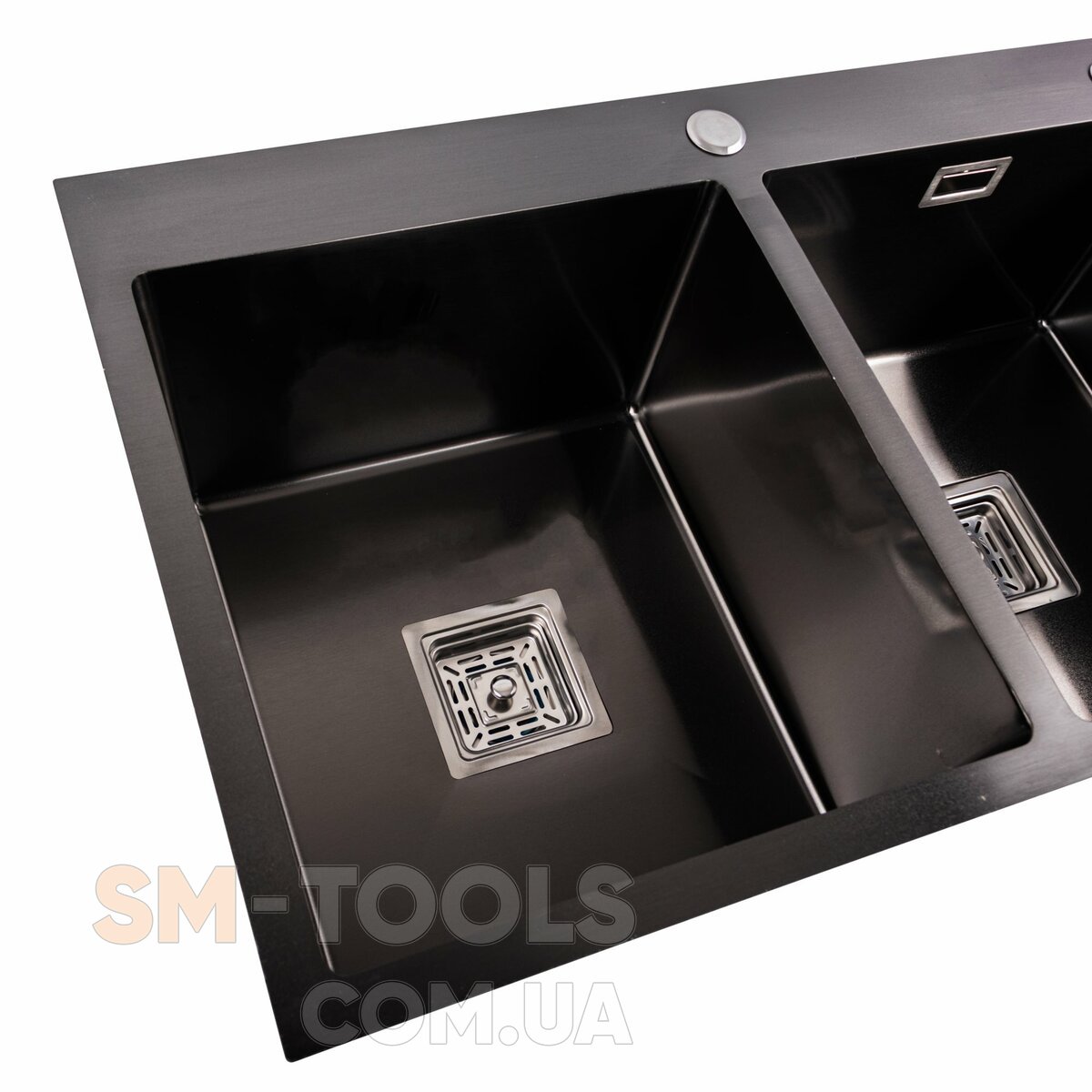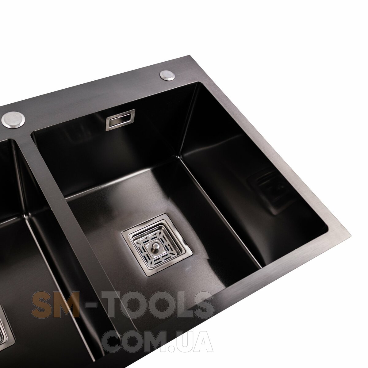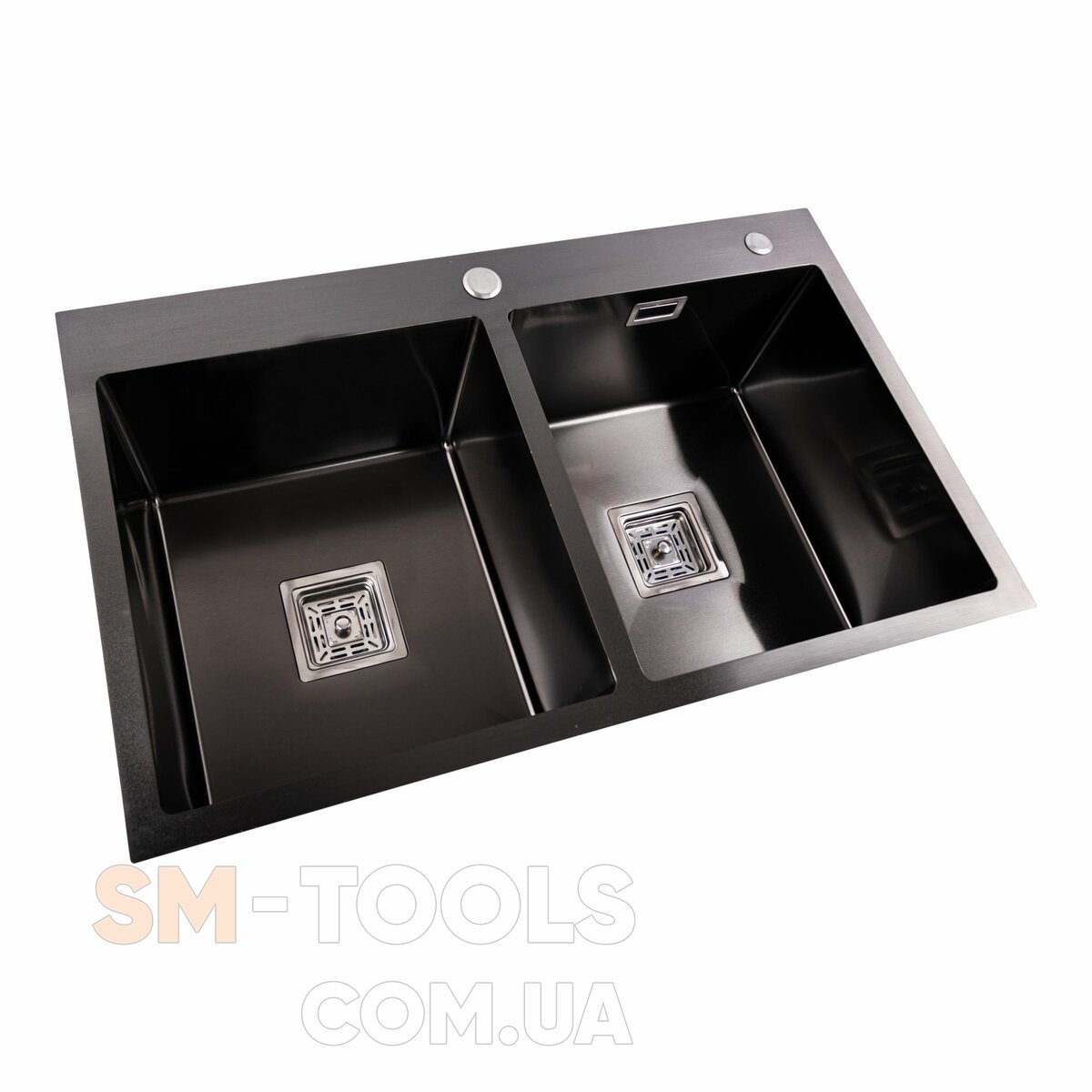 Характеристики Кухонная мойка Platinum Handmade PVD HDB черная 780х480х230 на две чаши (квадратный сифон,3.0/1.0)