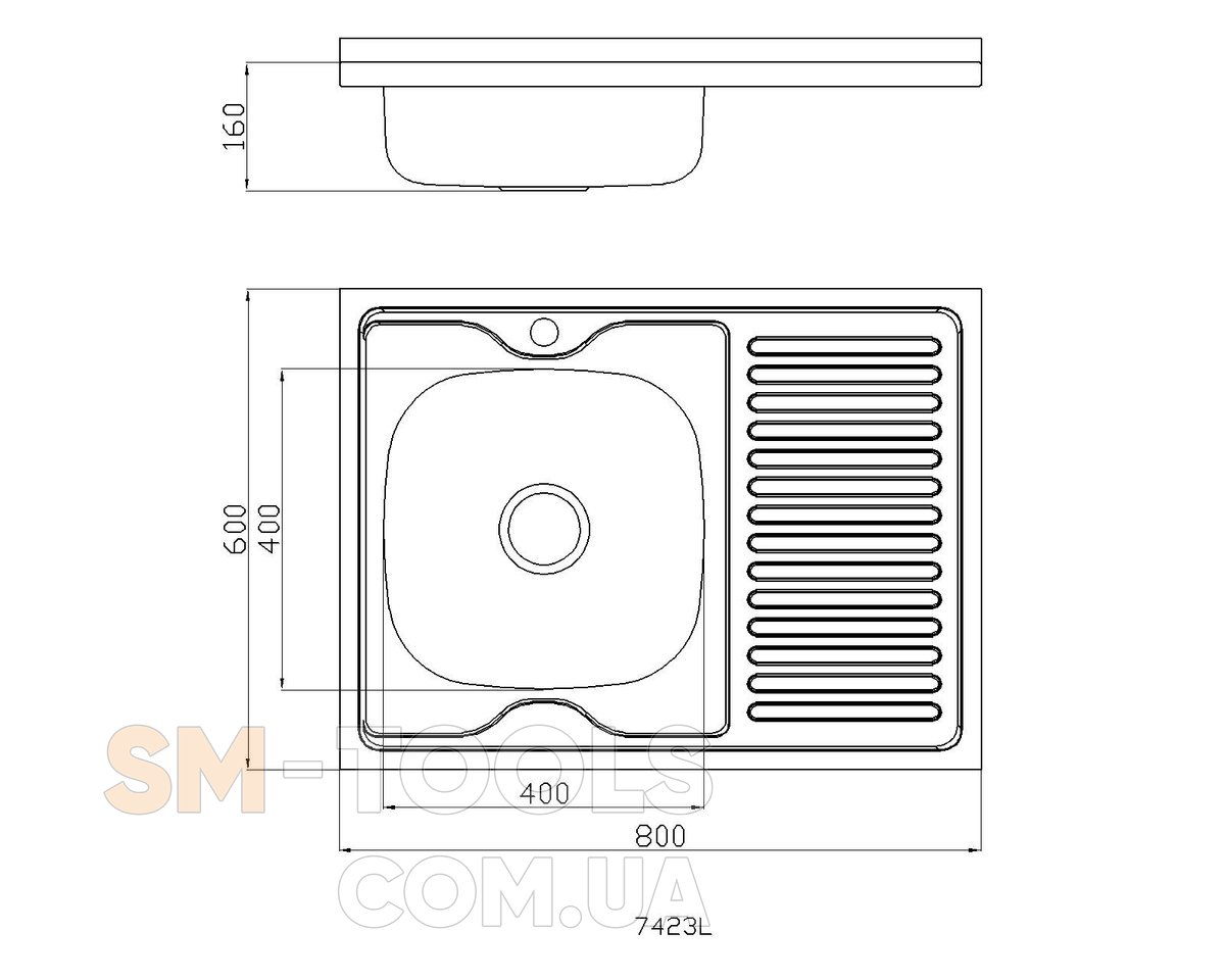 Размер мойки (ШхГхВ), мм: 800x600x160