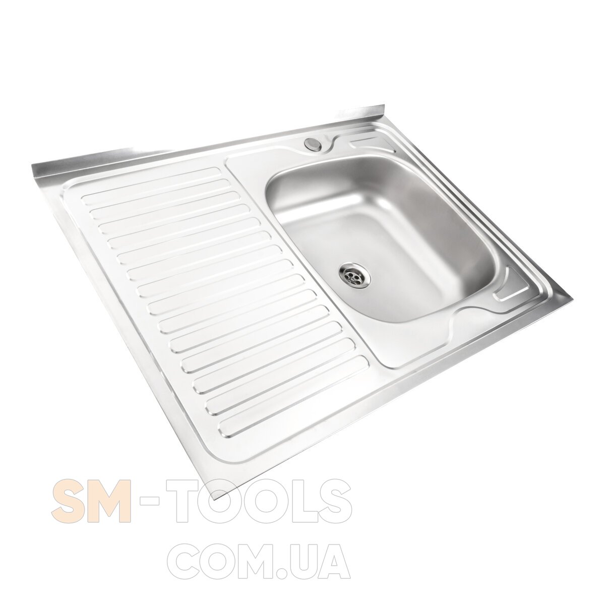 Мойка имеет чашу глубиной 160 мм, способную вместить габаритную посуду. Тип установки – накладная, на тумбу. Также у нас можно приобрести смесители и сифон с узкой горловиной для этой мойки. Характеристики Кухонная мойка из нержавеющей стали Platinum САТИН 8060 R (0, 5/160 мм)