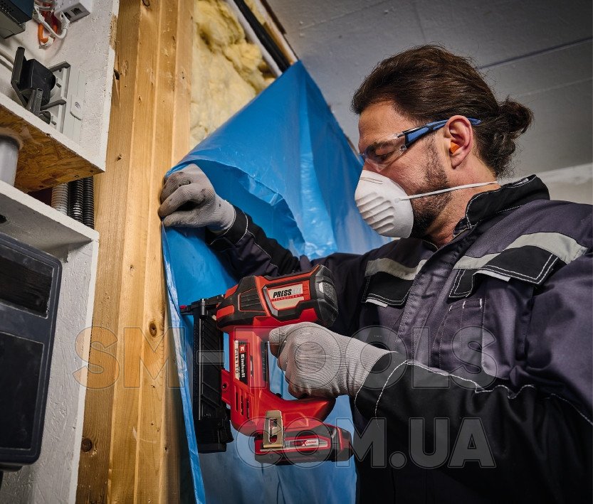 Инструмент серии Power X-Change Технология PressAir: не требует обслуживания, без дополнительных затрат и оборудования Прочный редуктор позволяет до 60 выстрелов в минуту Переключение между одинарным и сериальными выстрелами Возможность настройки глубины для переменной глубины проникновения без дополнительных инструментов Прочная конструкция с эргономичной ручкой Большой магазин с индикатором уровня на 100 скоб Открытие магазина одним нажатием кнопки Защита от случайного срабатывания гвоздозабивателя Два светодиода для освещения рабочей зоны Эргономичные поверхности с мягкой накладкой для хорошего сцепления и удобной работы Отсутствие царапин на заготовке благодаря прорезиненным боковым поверхностям Практическая клипса для пояса для дополнительного комфорта Поставляется с 500 скобами Подходит для скоб длиной 10–38 мм и шириной 5,7 мм. Поставляется без аккумулятора и зарядного устройства. Аккумуляторный степлер для скоб Einhell Professional FIXETTO 18/50 S – мощный помощник при ремонте и декорировании. При обивке мебели, приклеивании деревянных панелей или прикреплении фольги, брезента или изоляционных материалов – с помощью аккумуляторного степлера вы можете легко выбирать между единичным или серийным выстрелом в зависимости от рабочей нагрузки с помощью контроллера выстрелов. Как инструмент семейства Power X-Change, FIXETTO 18/38 S можно совмещать со всеми аккумуляторами и зарядными устройствами системы. Прочный редуктор и технология PressAir, не требующая обслуживания, обеспечивают до 60 выстрелов в минуту, тогда как регулировка глубины обеспечивает переменную и точную глубину ввода скобы. Большой магазин оснащен индикатором уровня и имеет максимальную емкость 100 скоб. Его можно легко открыть и заполнить одним нажатием кнопки. Аккумуляторный степлер можно использовать со скобами длиной 10–38 мм и шириной 15–5,7 мм. Тонкая конструкция с прорезиненными боковыми поверхностями и эргономичной мягкой рукояткой обеспечивают удобное использование. Светодиодное освещение, встроенное с обеих сторон корпуса, обеспечивает оптимальное освещение рабочей зоны. В комплект поставки входит практичная клипса для безопасного промежуточного хранения и 500 скоб. Предохранительный конечник предотвращает случайное срабатывание степлера и таким образом защищает от травм. Аккумуляторный степлер поставляется без аккумулятора или зарядного устройства.Характеристики