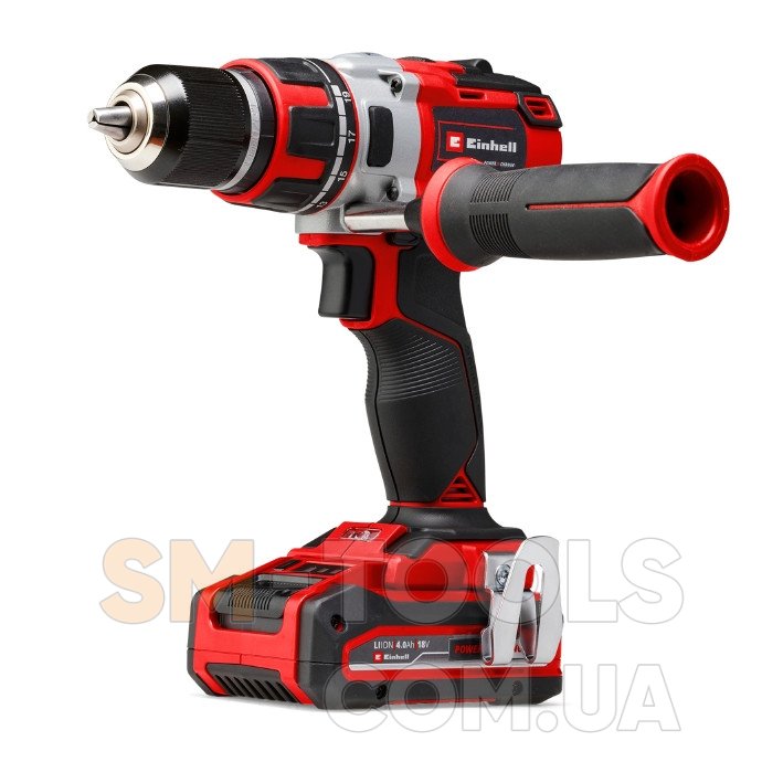 Инструмент серии Power X-Change Бесщеточный двигатель – большая мощность и более долгая работа Высококачественный металлический патрон 13 мм. Две скорости для мощного вкручивания и быстрого сверления Одномуфтовый быстрозажимной патрон с функцией быстрой остановки Эргономичные мягкие накладки на корпусе для комфортной работы Дополнительная рукоятка LED подсветка для освещения рабочей зоны Поставляется БЕЗ аккумулятора и зарядного устройства Профессиональная аккумуляторная дрель-шуруповерт Einhell TP-CD 18/80 Li BL-Solo – ваш надежный и мощный помощник в завинчивании и сверлении. Будучи членом семейства Power X-Change, его можно совмещать со всеми аккумуляторами и зарядными устройствами системной серии. Устройство приводится в движение безщеточным двигателем Einhell PurePOWER. Этот бесщеточный двигатель обеспечивает большую мощность и более длительное время работы, чем обычные двигатели с угольными щетками. Благодаря 2-скоростному редуктору Quick-stop, крутящему моменту 80 Нм и 19 уровням крутящего момента, а также дополнительной настройке сверления, аккумуляторная дрель-шуруповерт обеспечивает большую мощность для сверления. Благодаря электронике с тонкой регулировкой скорости осторожное сверление и заворачивание не представляет никаких проблем. Одномуфтовый 13-мм быстрозажимной патрон из крепкого металла надежно фиксирует соответствующие насадки. Встроенное светодиодное освещение обеспечивает хороший обзор рабочей зоны даже в темных и плохо освещенных помещениях. Благодаря эргономичному и тонкому дизайну с поверхностями SoftGrip аккумуляторная дрель-шуруповерт удобно лежит в руке. С помощью клипсы на ремень аккумулятор можно быстро и надежно хранить на поясе. Аккумуляторная дрель-шуруповерт Einhell Professional TP-CD 18/80 Li BL-Solo поставляется без аккумулятора и зарядного устройства.Характеристики