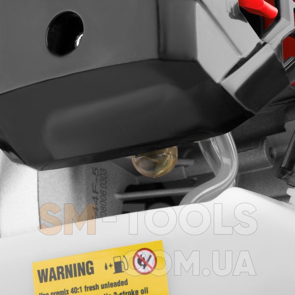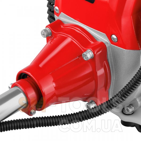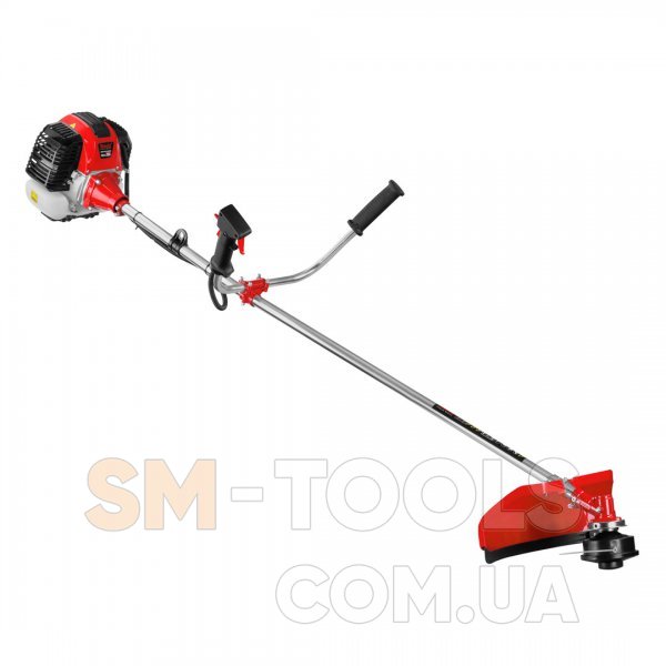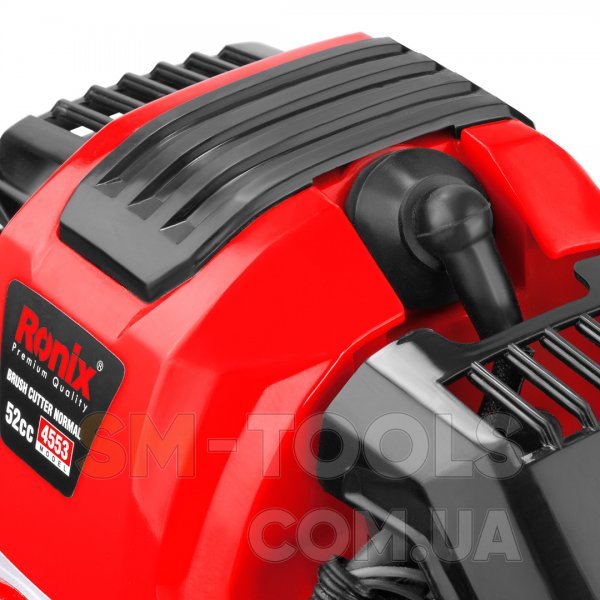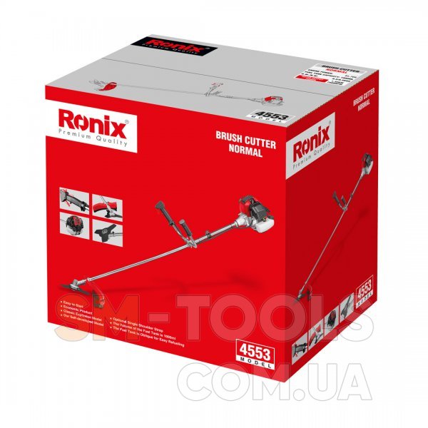 Триммер — мощный инструмент, используемый на многих компактных участках с густой зарослью, грубой травой, сорняками и т. д., а также для более сложных работ. Таким образом, он идеально подходит для тяжелых работ на открытом воздухе. Бензиновый кусторез Ronix 4553 справится со всеми вашими задачами в саду. ## Двигатель и механизм 2-тактный двигатель мощностью 1350 Вт приводит в действие бензиновый триммер Ronix 4553 и благодаря своей выдающейся производительности помогает вам выполнять многие сложные операции. Благодаря рабочему объему 51.7 куб.см этот двигатель может развивать максимальную скорость 7500 об/мин. Высокий крутящий момент позволяет прорезать самые сложные участки и снизить нагрузку на двигатель при тяжелых условиях эксплуатации. Двигатель оснащен превосходной системой зажигания CHAMPION типа CDI, обеспечивающей мощную и плавную работу. Ronix 4553 также оснащен карбюратором мембранного типа и системой сцепления новой конструкции, что обеспечивает лучшую производительность и более высокую эффективность. ## Корпус и переключатели Бензиновый триммер Ronix 4553 — это эргономичный и легкий инструмент весом всего 8.5 кг. Он ручного типа, который также известен как велосипедный или тип с велосипедной ручкой. Он оснащен эргономичной алюминиевой ручкой с резиновым покрытием, обеспечивающим повышенный комфорт и точный контроль над инструментом. Антивибрационная система также делает процедуру более комфортной и снижает утомляемость при длительной работе. Эргономичный двойной ремень и многопозиционное крепление помогают обеспечить идеальный баланс и снизить усталость. Кусторез Ronix 4553 имеет комбинированную конструкцию дроссельного переключателя. ## Вал Он оснащен цельным валом с 9 зубьями, который передает мощность от корпуса к металлическому лезвию или режущей головке инструмента через штангу диаметром 26 мм. Этот прочный, высококачественный стальной вал прослужит дольше. ## Лезвие Ronix 4553 поставляется с двумя типами лезвий: нейлоновой режущей головкой новой конструкции и металлическим режущим лезвием с тремя зубьями для густых зарослей. Нейлоновое лезвие позволяет поддерживать идеальную длину триммерной лески. Металлическое лезвие этой бензокосы обеспечивает простоту использования и максимальную функциональность инструмента. В комплект инструмента входит защитный кожух лезвия, разработанный Ronix, для большей безопасности и чистоты работы. ## Бак Бак модели Ronix 4553 имеет емкость 1000 мл и бензиновый источник питания. Соотношение смешивания масла и бензина для двухтактного двигателя в баке составляет 1:40. ## Насос Бензиновый триммер Ronix 4553 оснащен новой интеллектуальной системой запуска капсюля, которая упрощает запуск инструмента с меньшими усилиями. ## Комплектация и упаковка В комплект бензинового триммера Ronix 4553 входит металлическое лезвие на 3 зуба, нейлоновая триммерная головка, защитный кожух, плечевой ремень, бутыль для смешивания масла, отвертка и гаечный ключ. Эти функции и аксессуары позволяют Ronix 4553 обеспечить максимальную производительность и функциональность для пользователя и сделать ваши сады и дворы красивее. ## Особенности - Мощный 2-тактный двигатель объемом 51.7 куб.см, мощностью 1350 Вт с выдающимися характеристиками в тяжелых условиях эксплуатации - Высокий крутящий момент позволяет прорезать самые сложные участки с ме