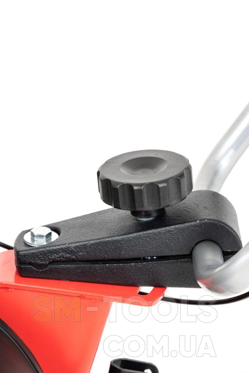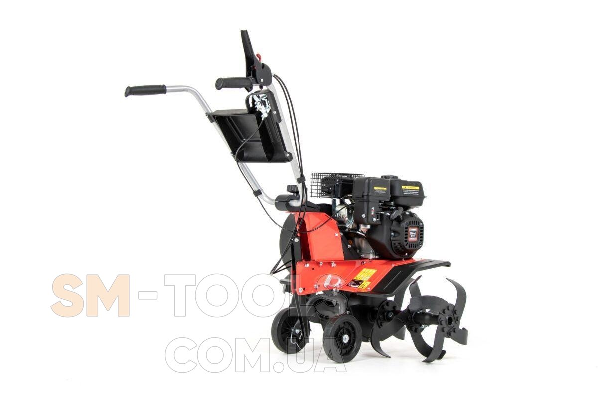 При весе более 57 кг этот мотокультиватор становится чрезвычайно прочным и устойчивым к нагрузкам. Его комфортное использование обеспечивают крепкие транспортные колеса и ручка для управления, что обеспечивает вам контроль над машиной во время работы.