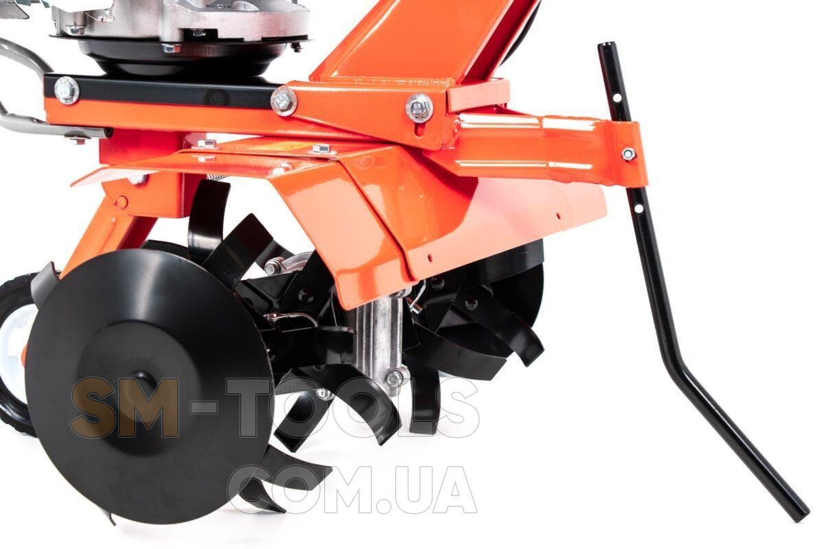Имеет стальной корпус, защищающий устройство от вредных внешних факторов. Это долговечное и надежное оборудование, гарантирующее эффективную работу в полевых условиях. Рабочая глубина на этой модели составляет 20 см – агрегат имеет одну переднюю передачу. Клиентам предлагаются боковые диски в комплекте.