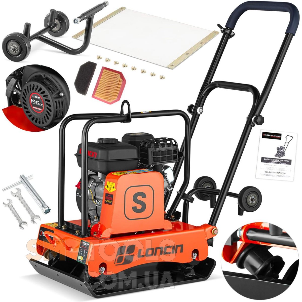 виброплита,резиновый коврик,транспортировочные колеса,руководство по эксплуатации,гарантийный талон.Характеристики Виброплита SCHWARTZMANN SCH-ZG90TK